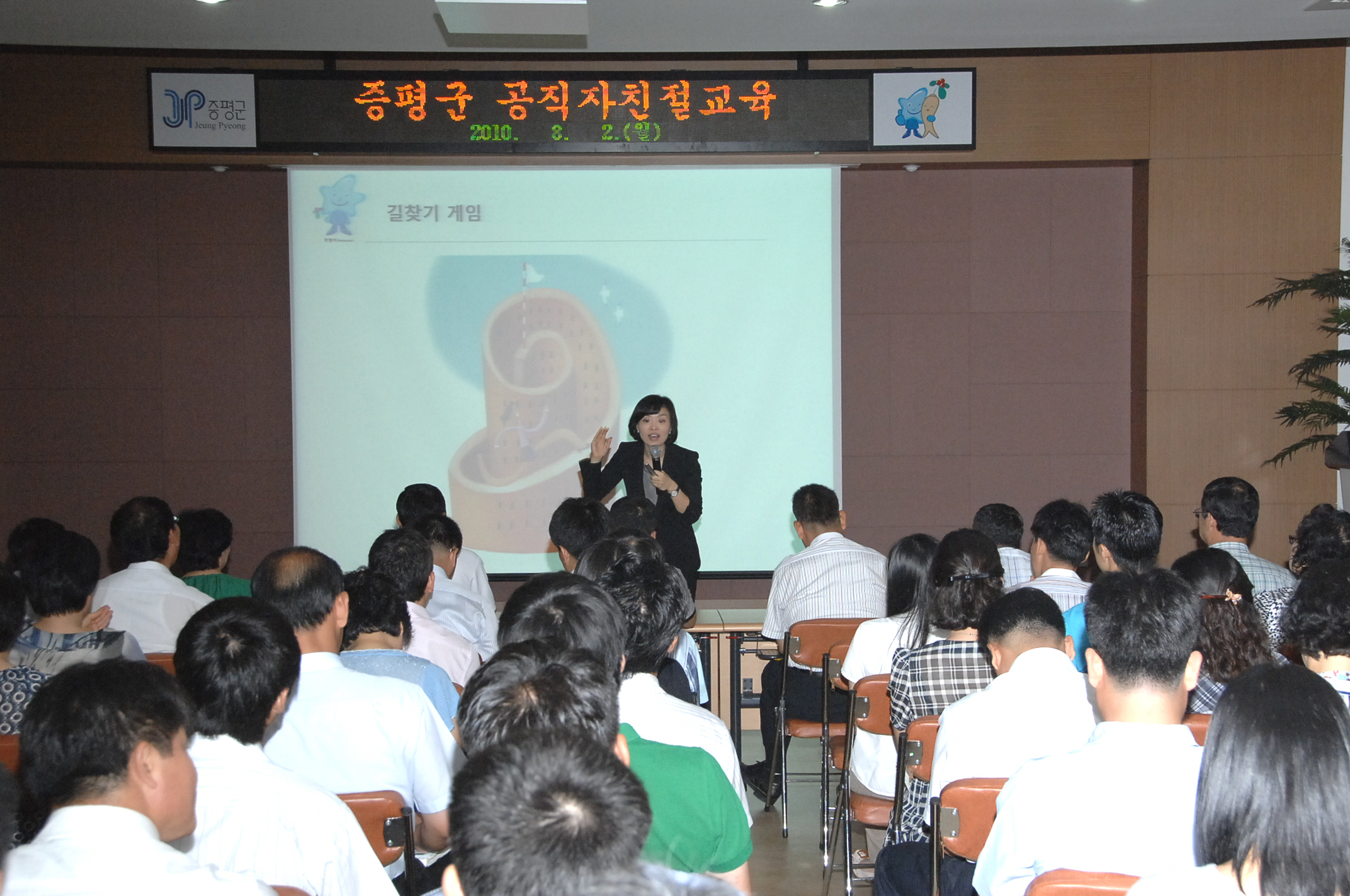 증평군은 8월 2일 오전 9시 군청 회의실에서 홍성열 군수를 비롯한 간부공무원과 산하 공직자들이 참석한 가운데 민원행정 서비스의 향상을 위한 “공직자 친절교육”을 실시했다.[보도자료실 참조]