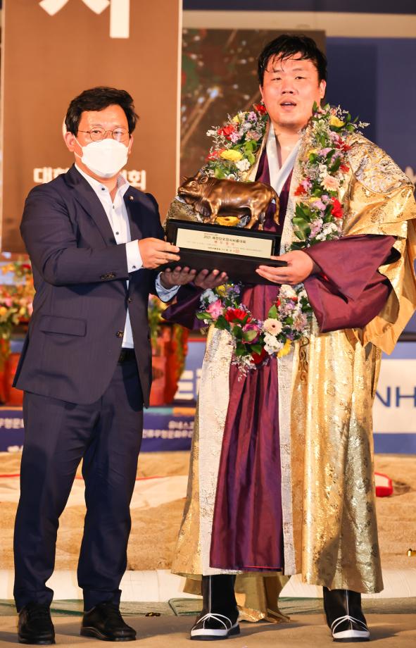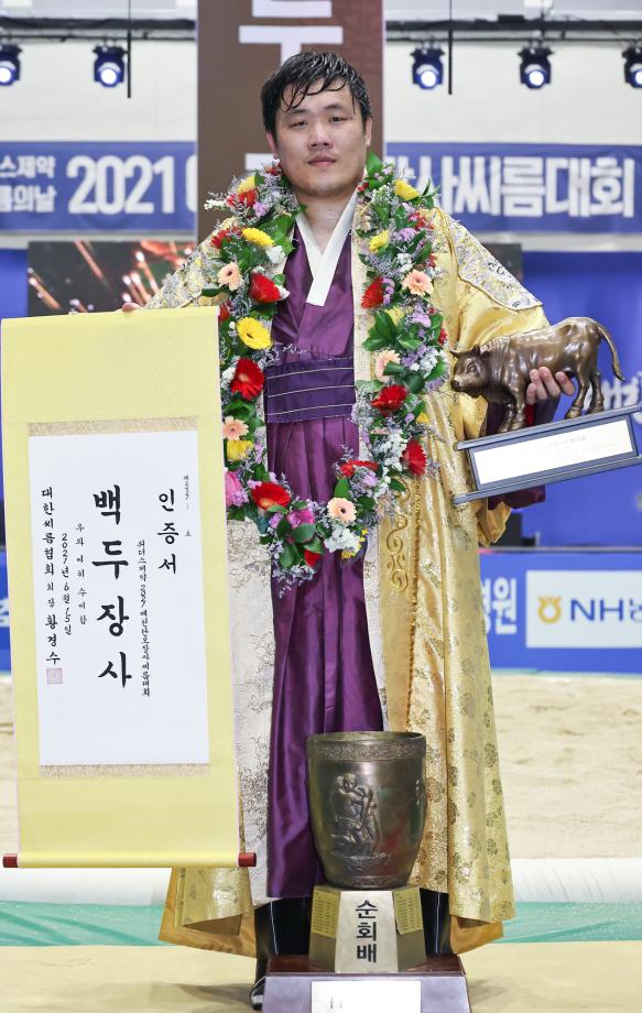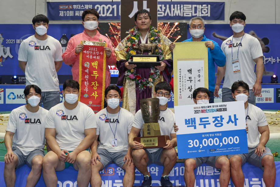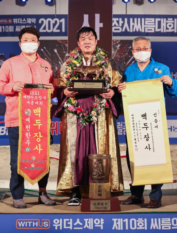 증평군 인삼씨름단 김진, 2021 단오장사씨름대회 백두장사 등극