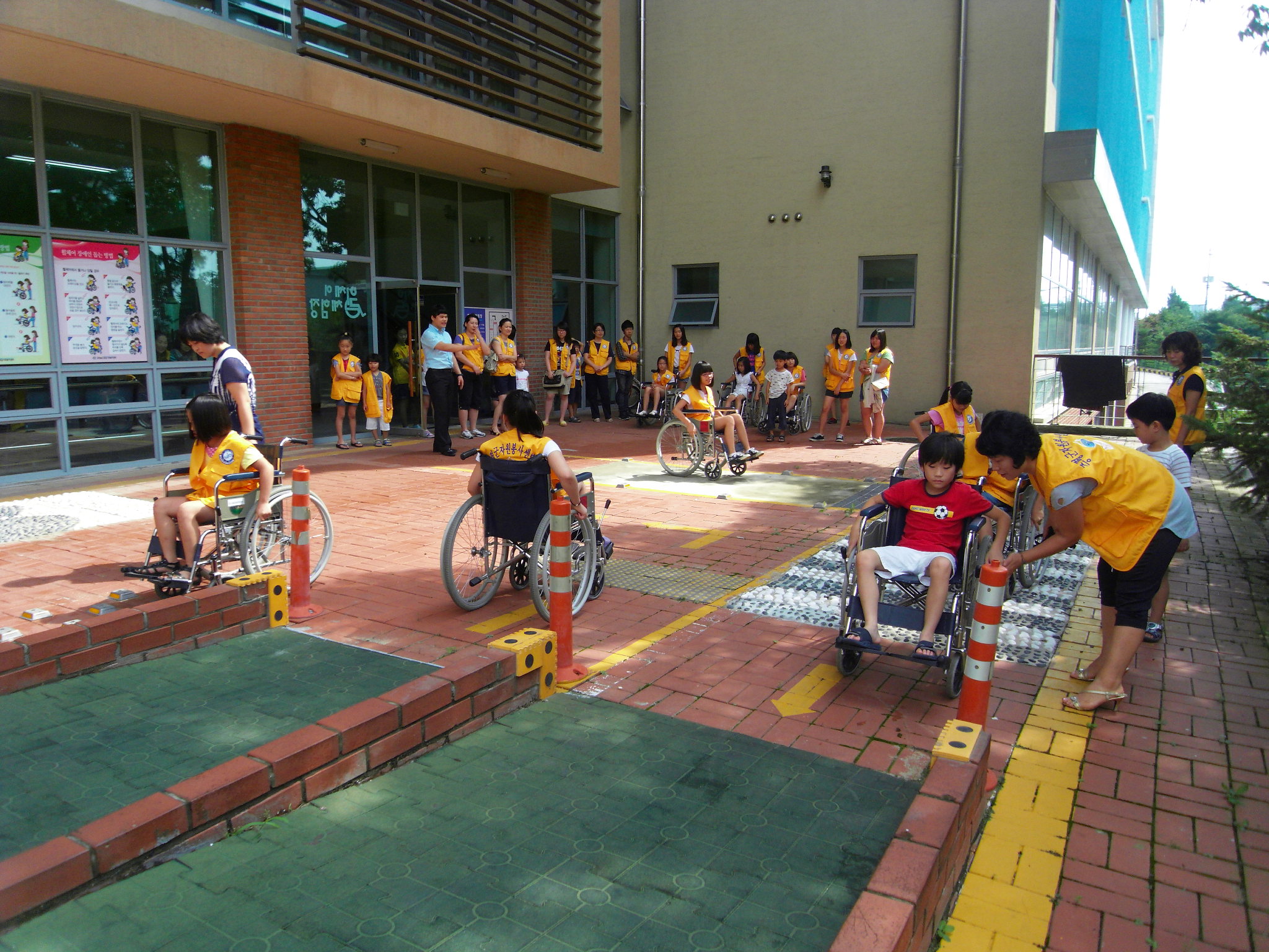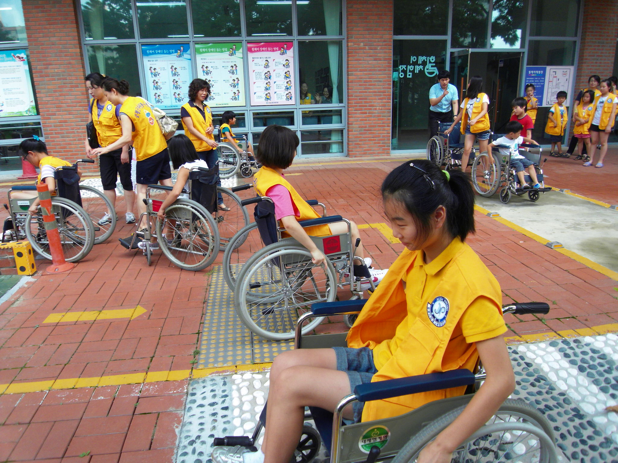 증평군 가족나드리봉사단(회장 이향순) 40여명은 19일 충북종합사회복지센터에서 장애 체험 교육시간을 가졌다.[보도자료실 참조]