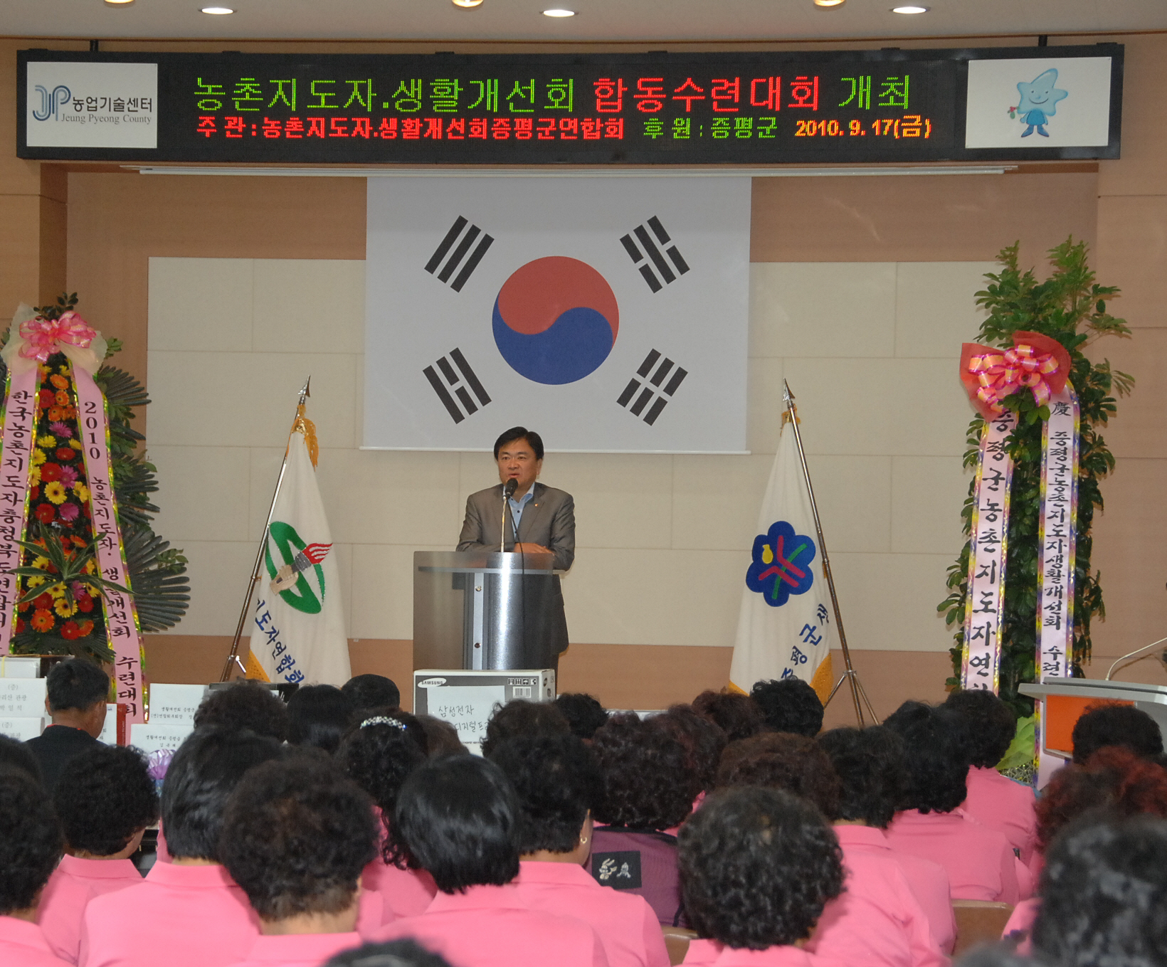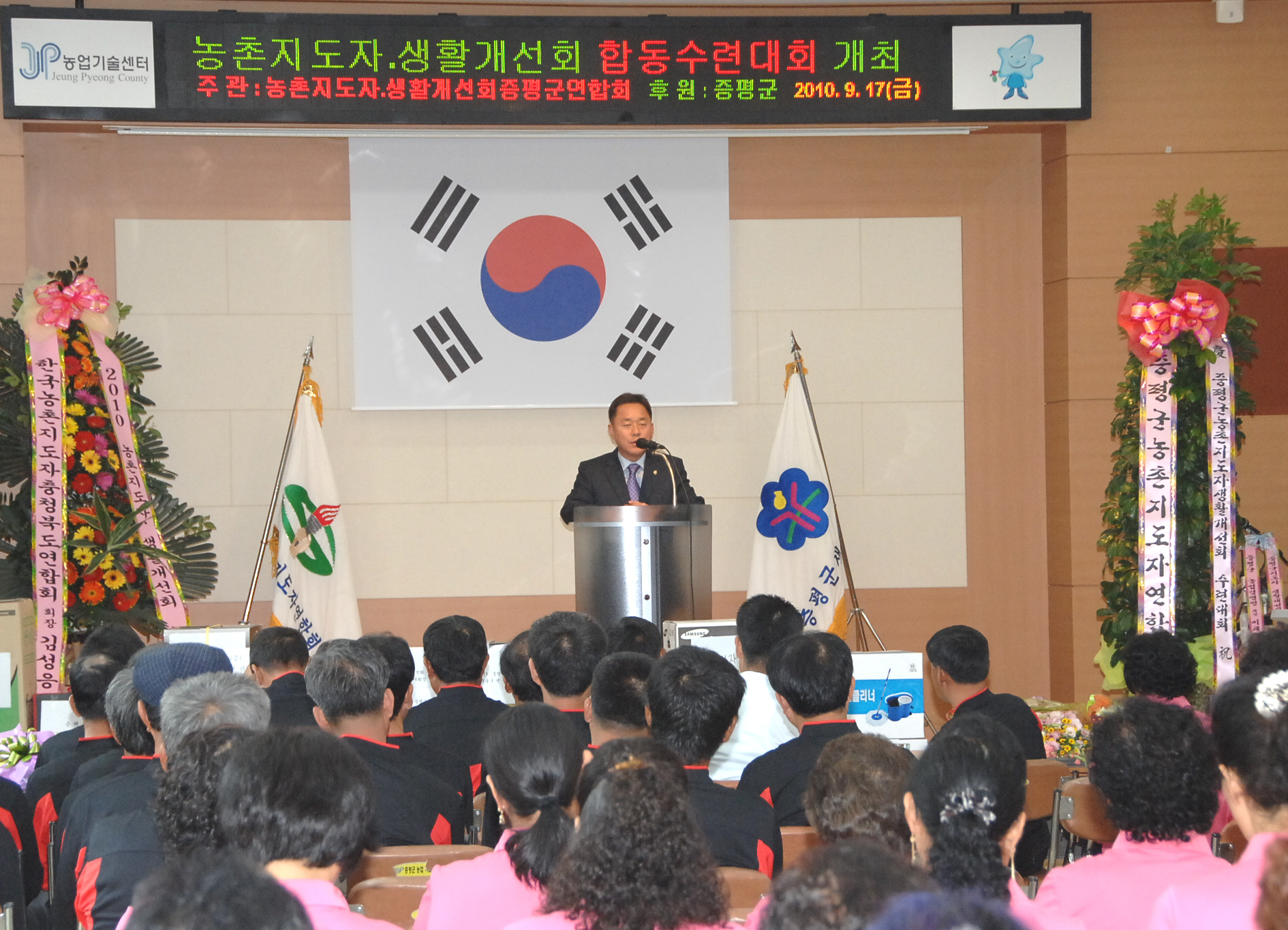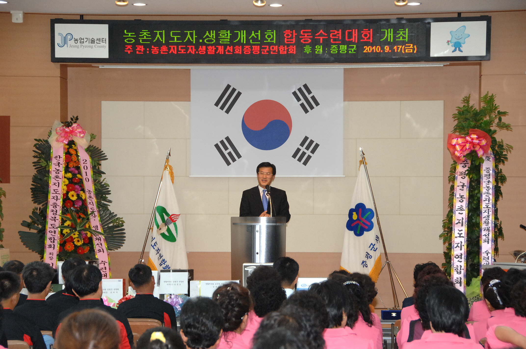 증평군농업기술센터(소장 김동구)는 17일 오전 11시 농업기술센터 별관 문화관 대회의실에서 농촌지도자 및 생활개선회원을 비롯한 관계자 150여명이 참석한 가운데 농촌지도자 및 생활개선회 회원들을 대상으로 합동수련대회를 개최했다.[보도자료실 참조]