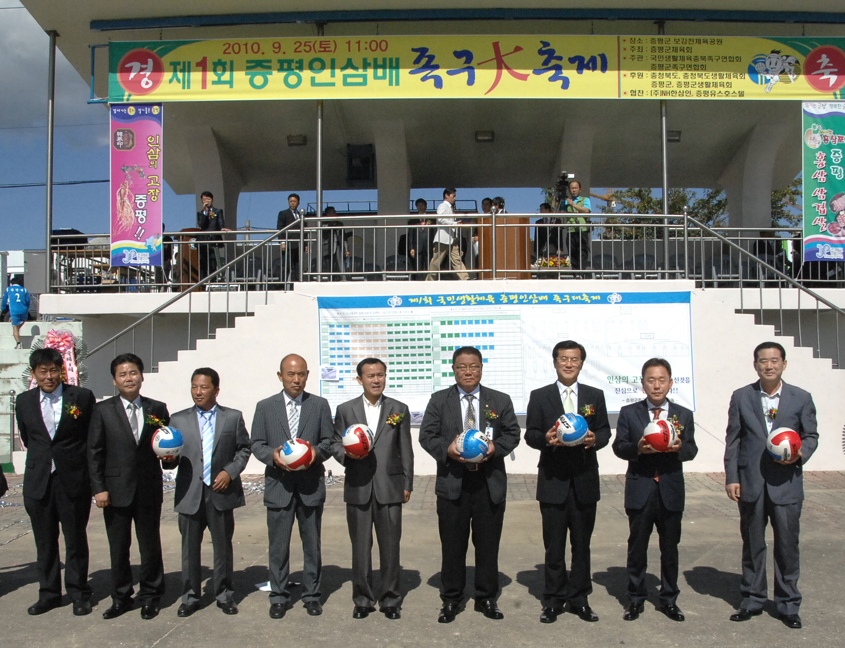 제1회 증평인삼배족구대축제가 25일과 26일 증평읍 보강천체육공원에서 전국에서 110개 팀 1,000여 명의 선수가 참가한 가운데, 일반부·장년부·청소년부로 나눠 경기가 펼쳐졌다.[9월20일 보도자료 참조]