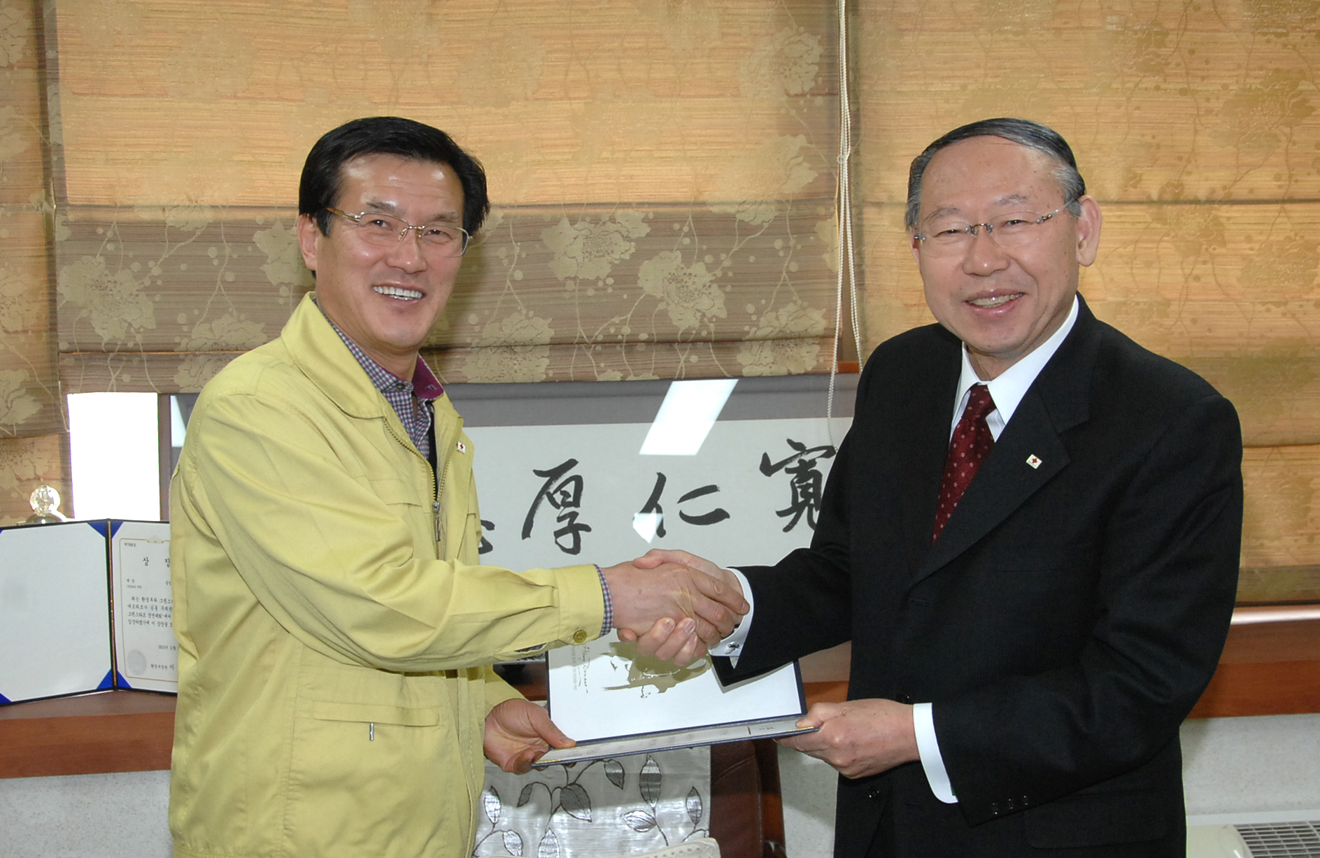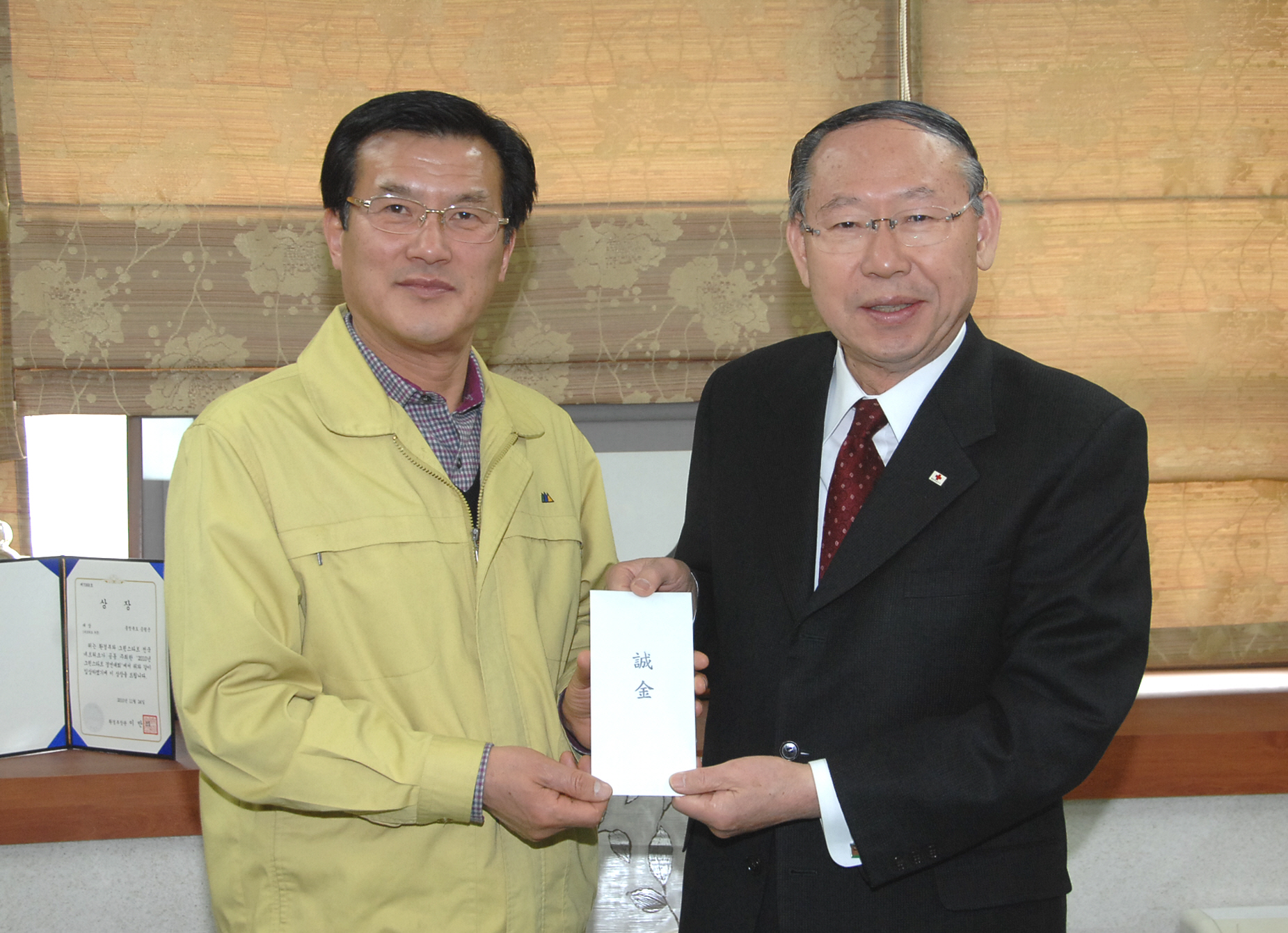 홍성열 증평군수는 11일 오후 2시 접견실에서 김영회 대한적십자사 충북지사 회장에게 적십자 특별회비 30만원을 기탁했다.[보도자료실 참조]