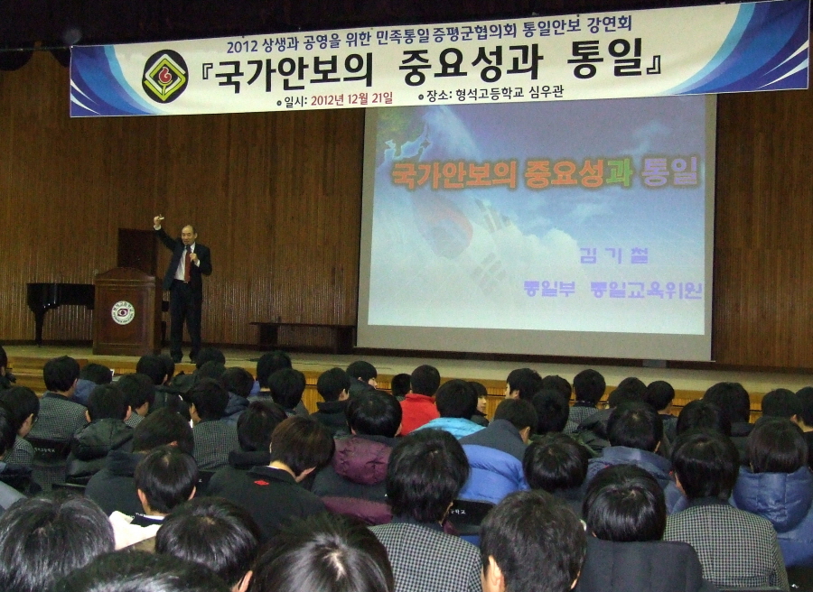 민족통일증평군협의회(회장 전홍관)은 지난 21일 오전 10시 30분 형석중학교(교장 홍진식) 학생들을 대상으로 통일 안보강연회를 개최했다. [보도자료실 참조]
