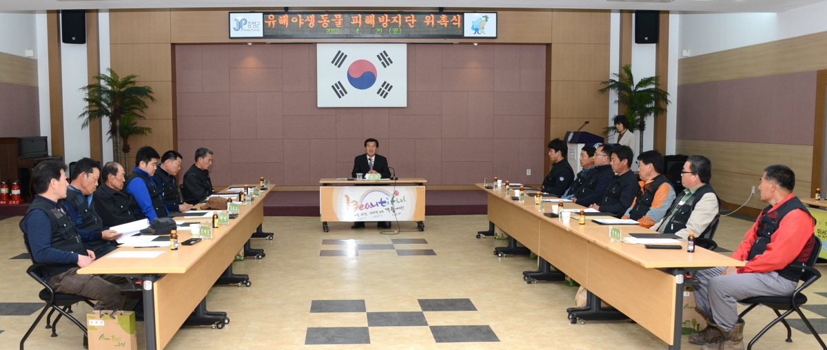 증평군은 유해야생동물로부터 농작물 피해를 방지하기 위해 29일 오후2시 군청 대회의실에서 피해 방지단 위촉식을 갖고, 다음달 1일부터 오는 10월 31일(6개월간)까지 운영에 들어간다. [보도자료실 참조]