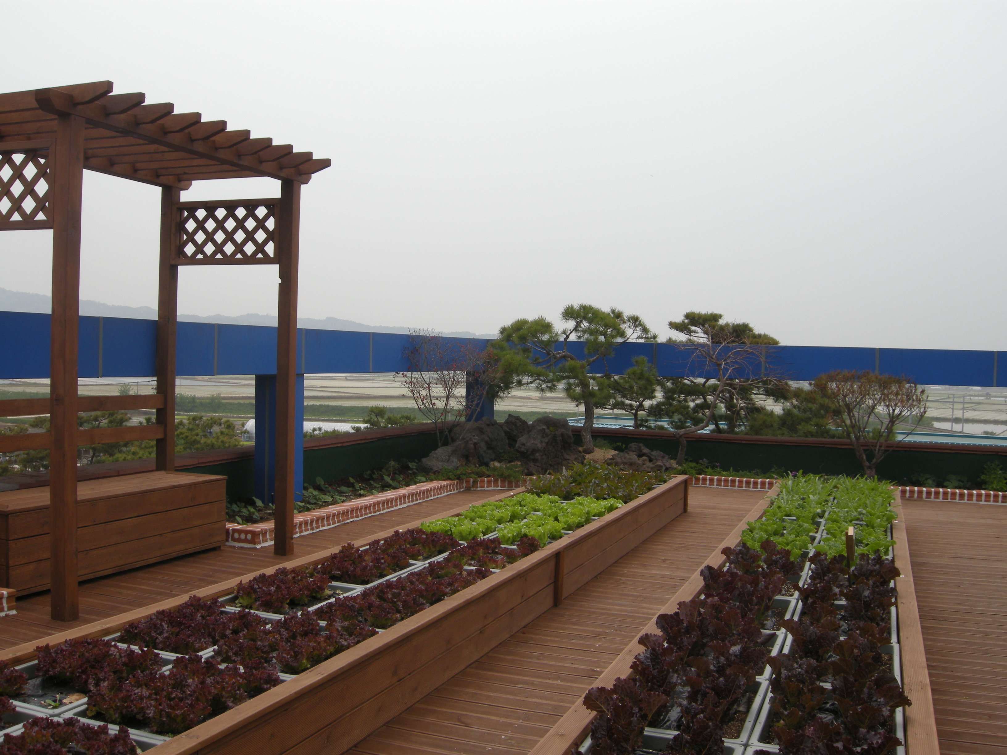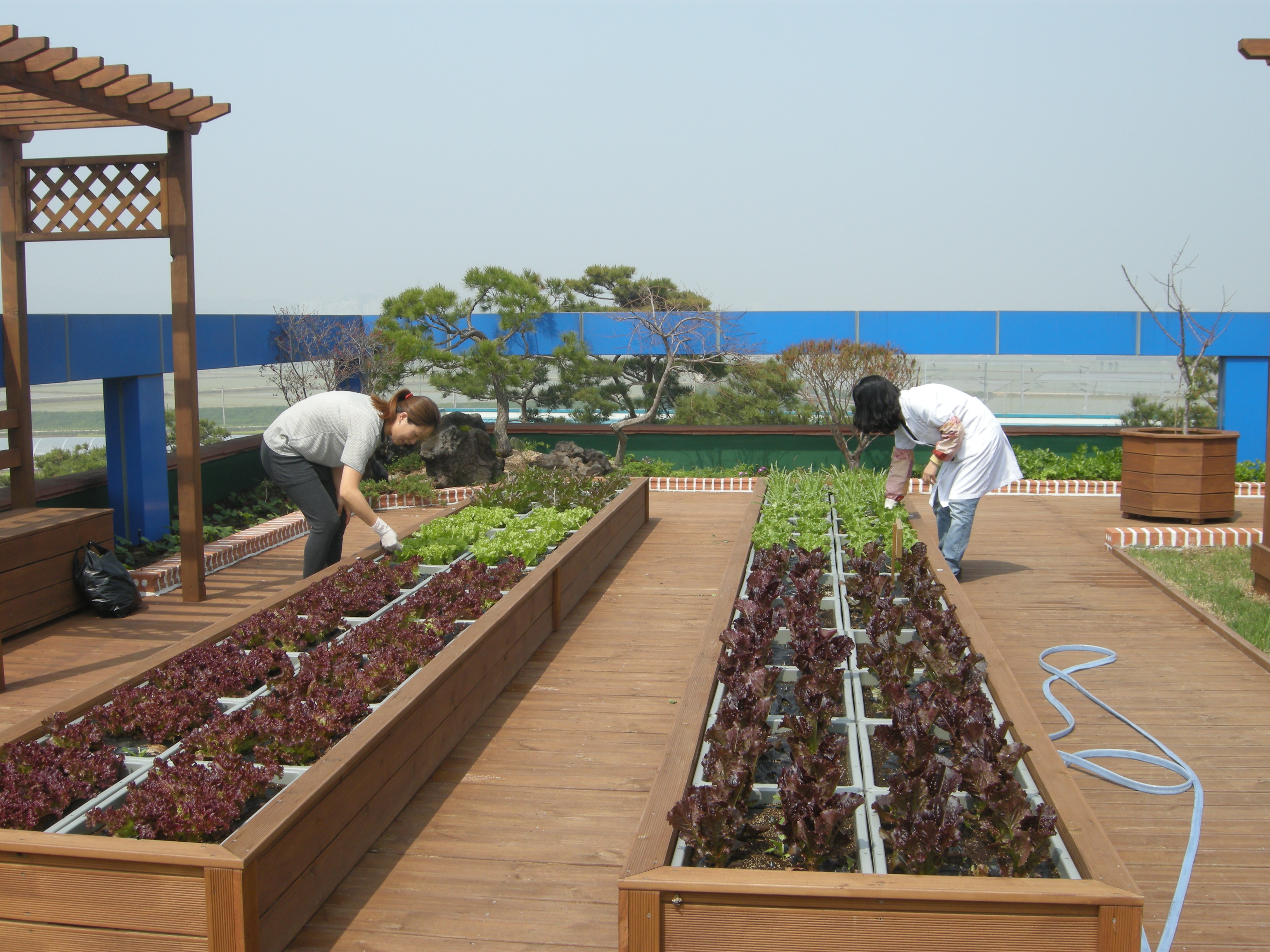 증평군농업기술센터(소장 김동구)가 본관건물 옥상에 조성된 텃밭에 상추 등 채소류를 재배해 녹색성장 활성화 기여와 내방자들의 휴식공간으로 제공해 눈길을 끌고 있다. [증평보도자료실 참조]