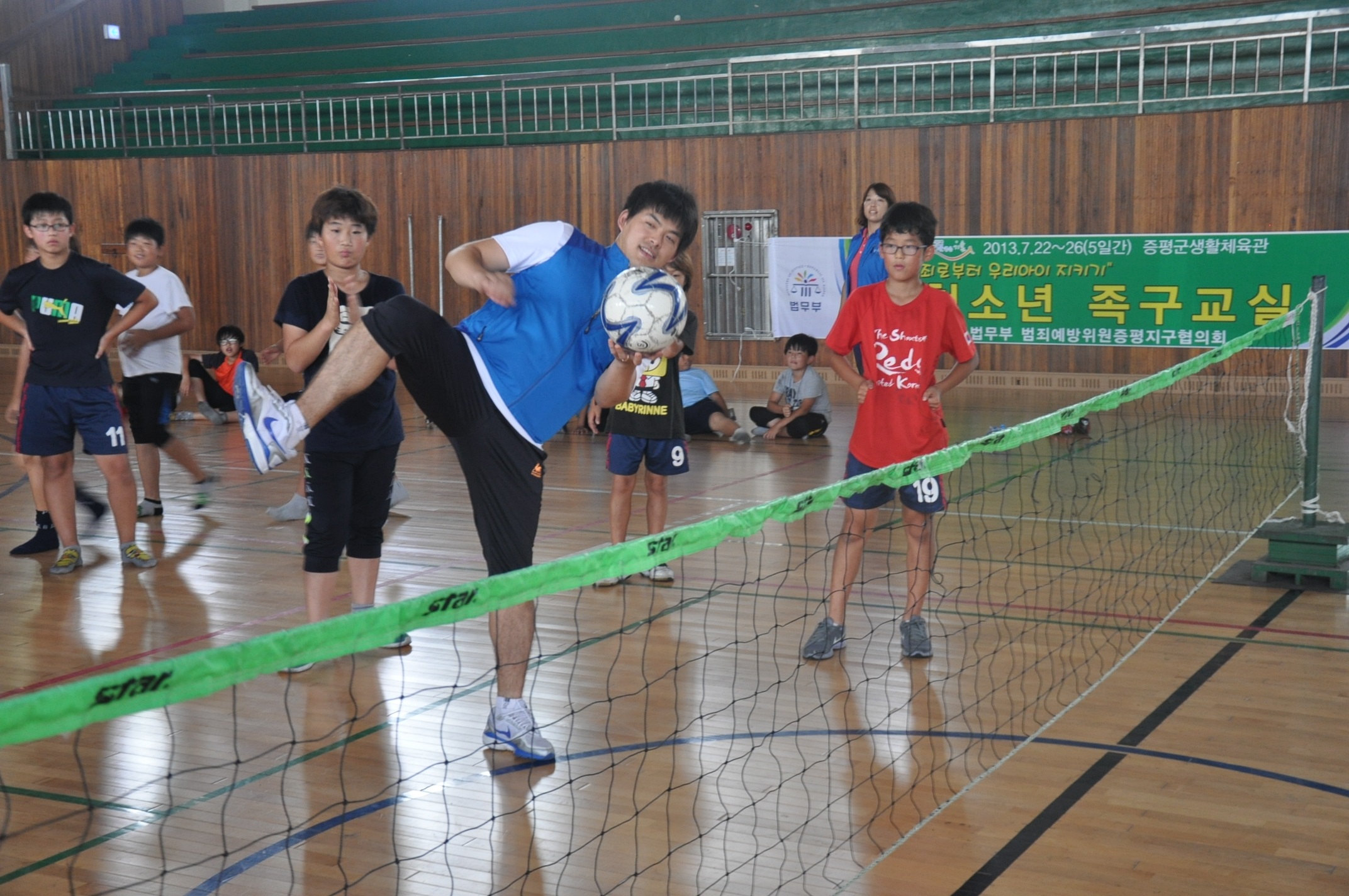 법무부 산하 범죄예방위원 증평지구협의회(회장 연광영)가 여름방학을 맞아 22일 청소년족구교실을 개강했다. [증평보도자료실 참조]