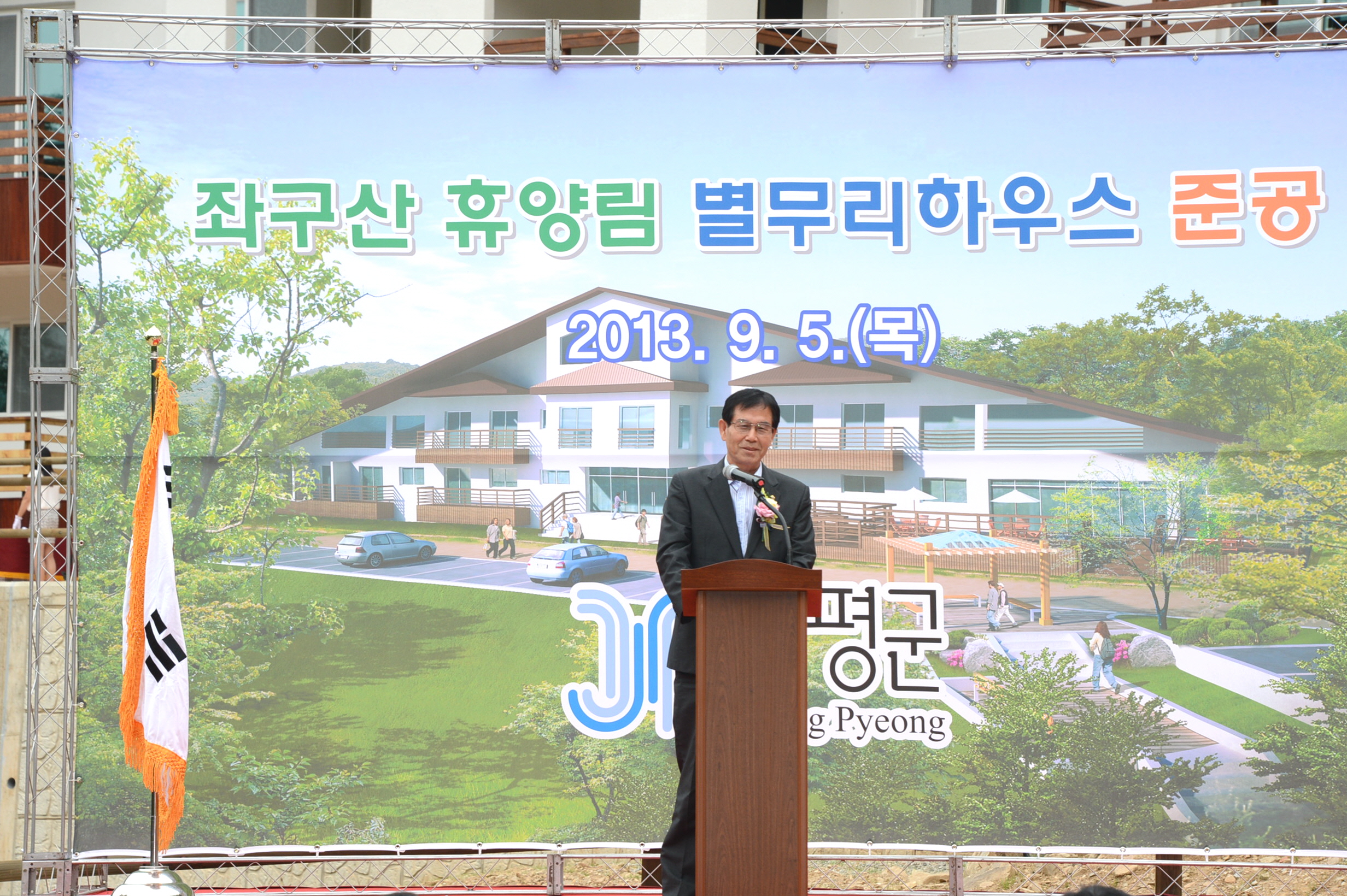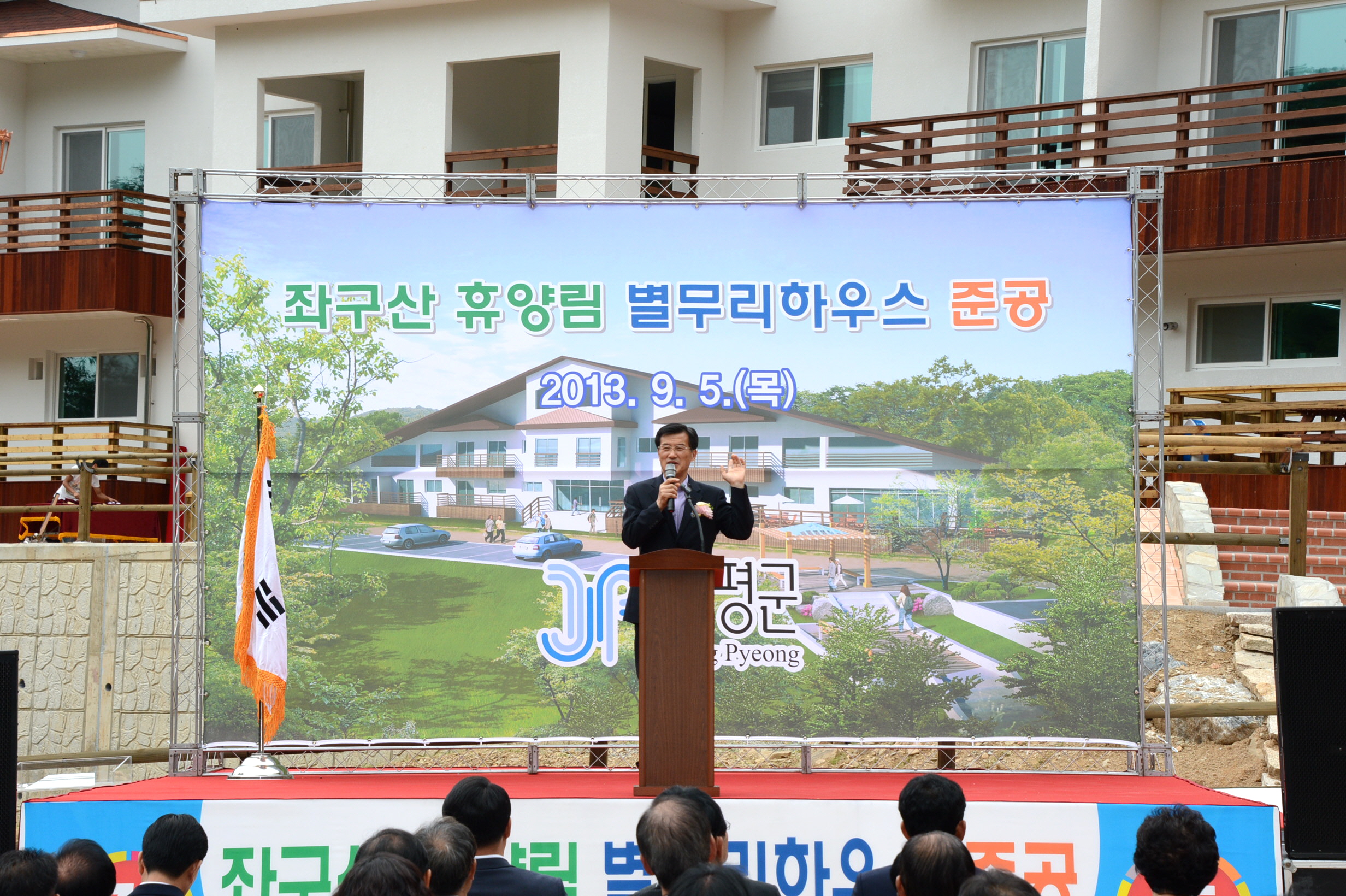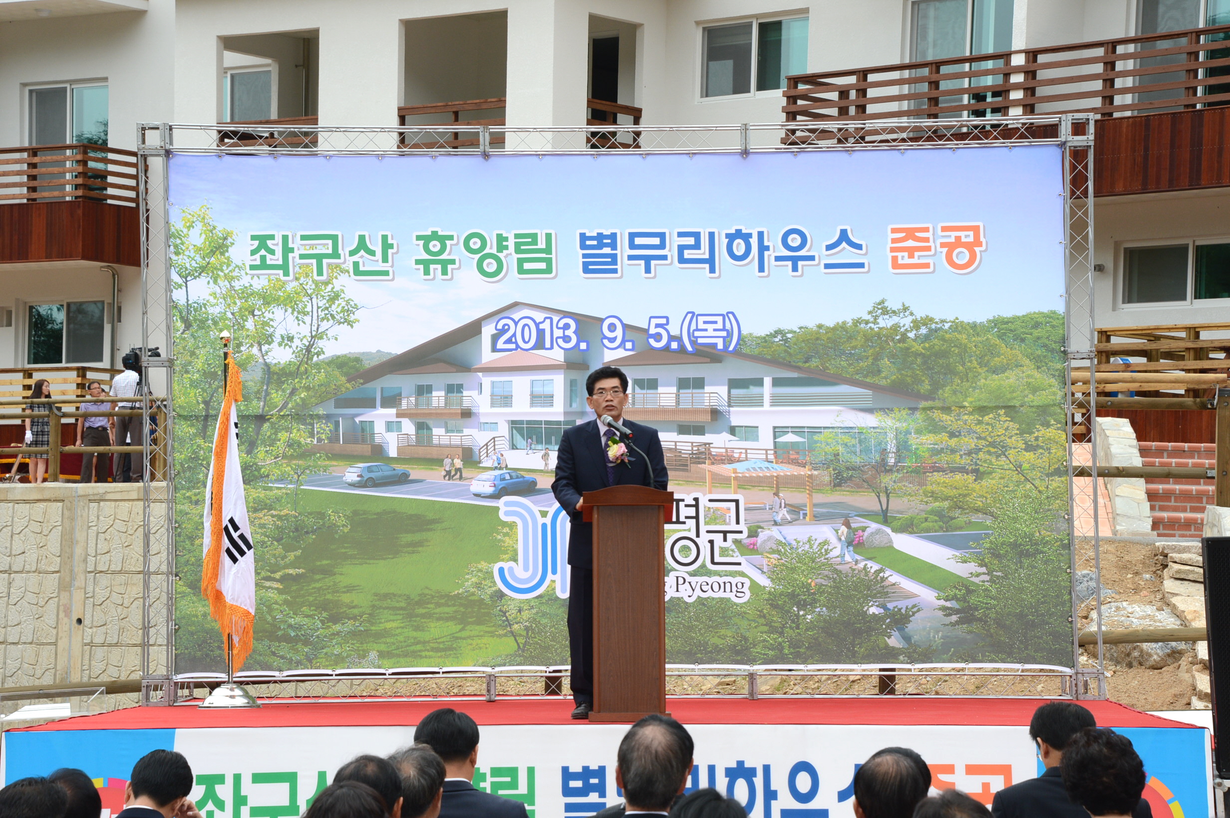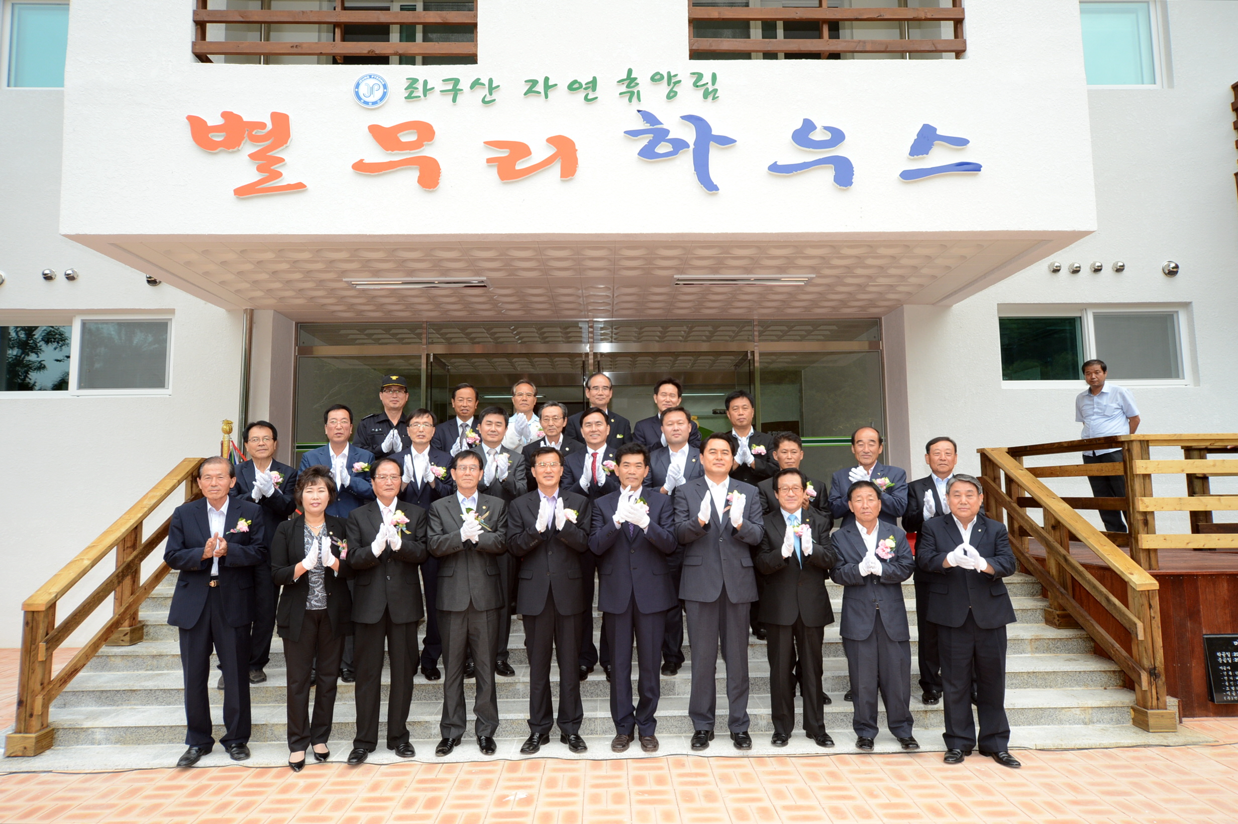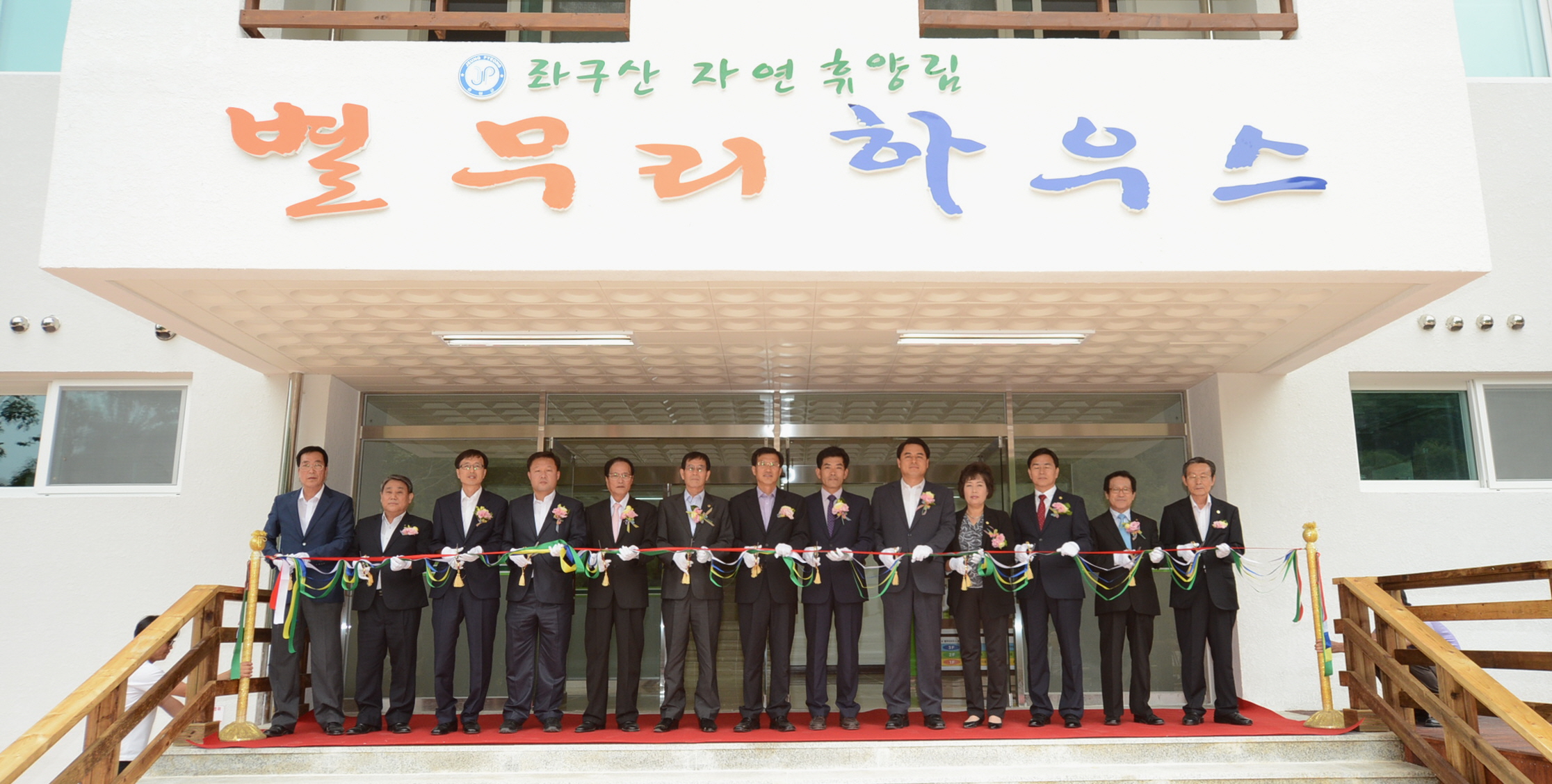 증평군은 5일 증평읍 율리 좌구산휴양림 일원에 홍성열 증평군수를 비롯해 박석규 군의회의장, 김봉회 도의원등 기관·사회 단체장 및 마을 주민 등 200여명이 참석한 가운데 산림생태문화체험단지 조성사업 일환으로 조성한 별무리하우스 준공식을 5일 개최했다. [보도자료실 참조]