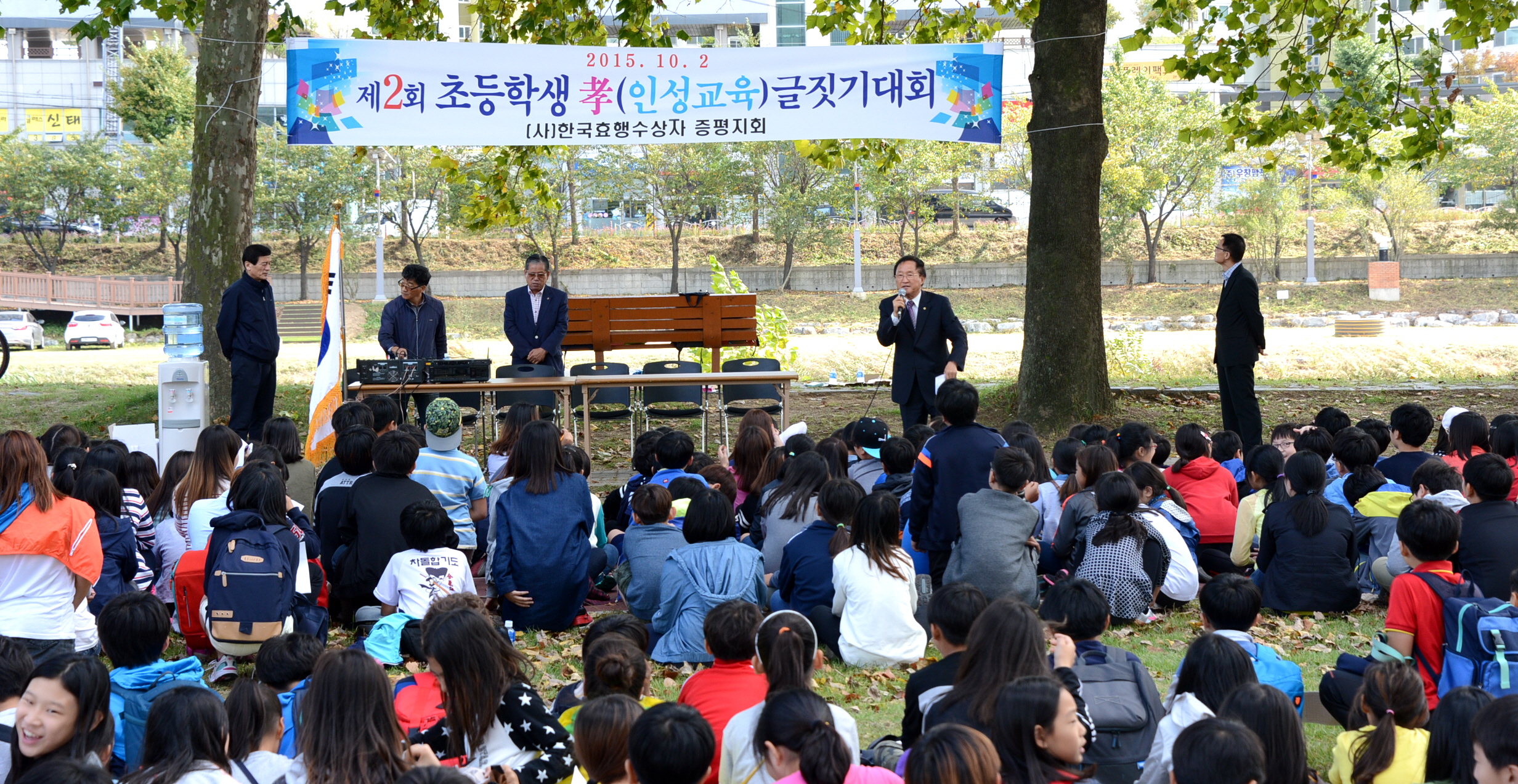 어린이들에게 효에 대한 중요성을 일깨워 어르신들을 공경하기 위한 ‘효문화 확산운동 글짓기대회’가 (사)한국효행수상자 효도회 증평군지회(회장 김장응) 주최로 2일 오후 2시 보강천 미루나무 숲에서 열렸다.[보도자료실 참조]