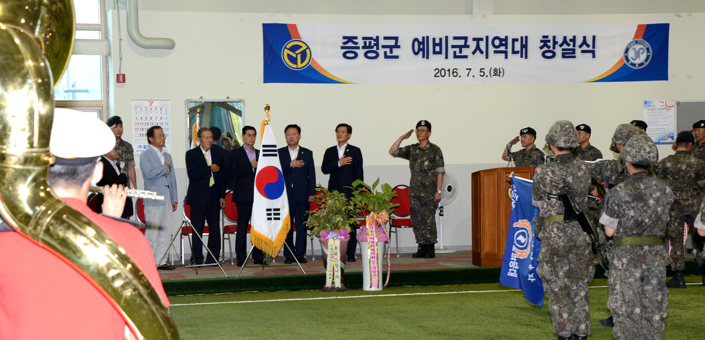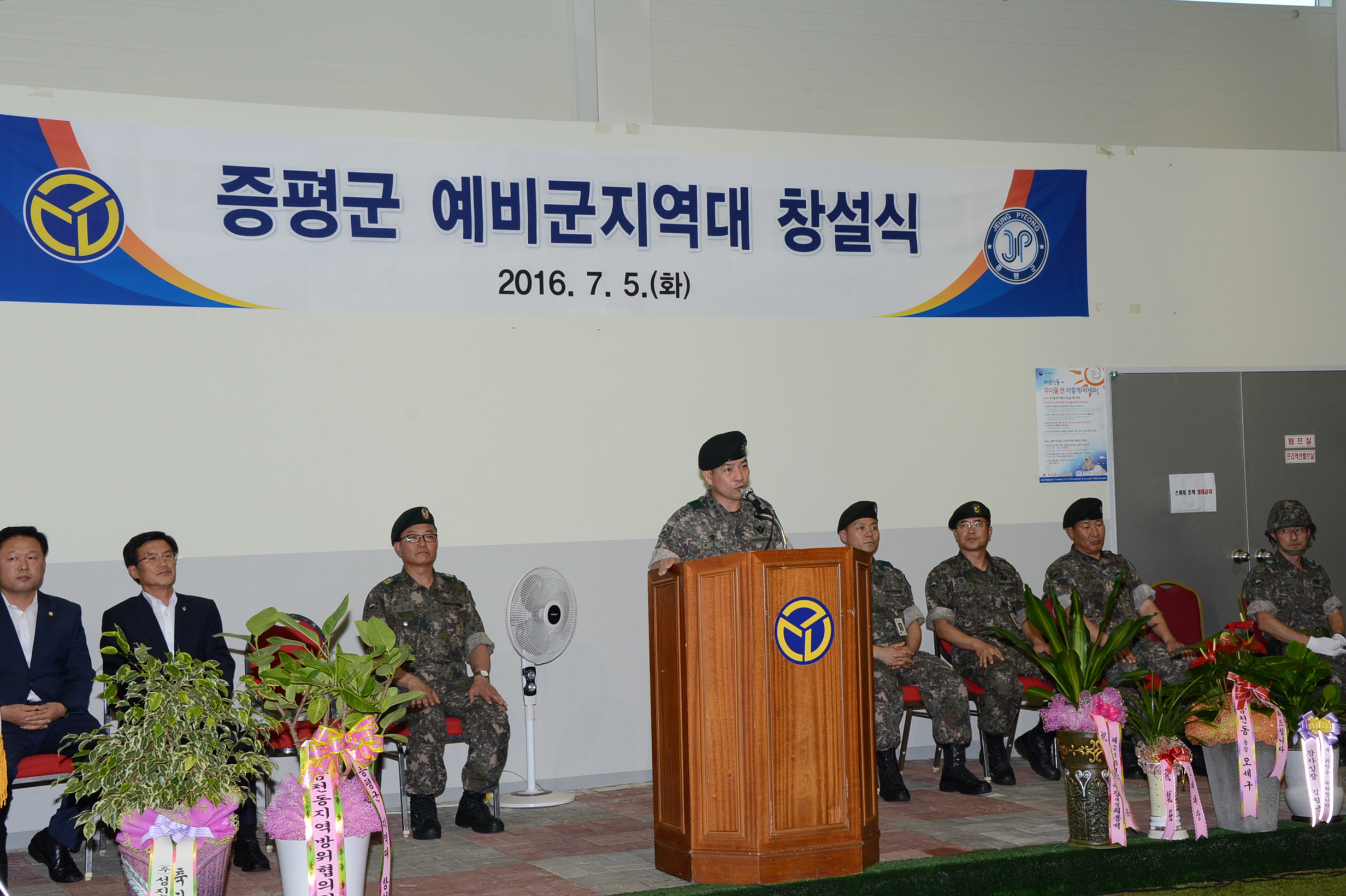증평군에 소재하고 있는 제37보병사단 110연대(연대장 최용석)는 5일 증평읍 송산리 게이트볼장에서 홍성열 증평군수를 비롯한 유관기관과 군부대 관계자 100여명이 참석한 가운데 증평군 지역대 창설식을 가졌다.(보도자료실 참조)