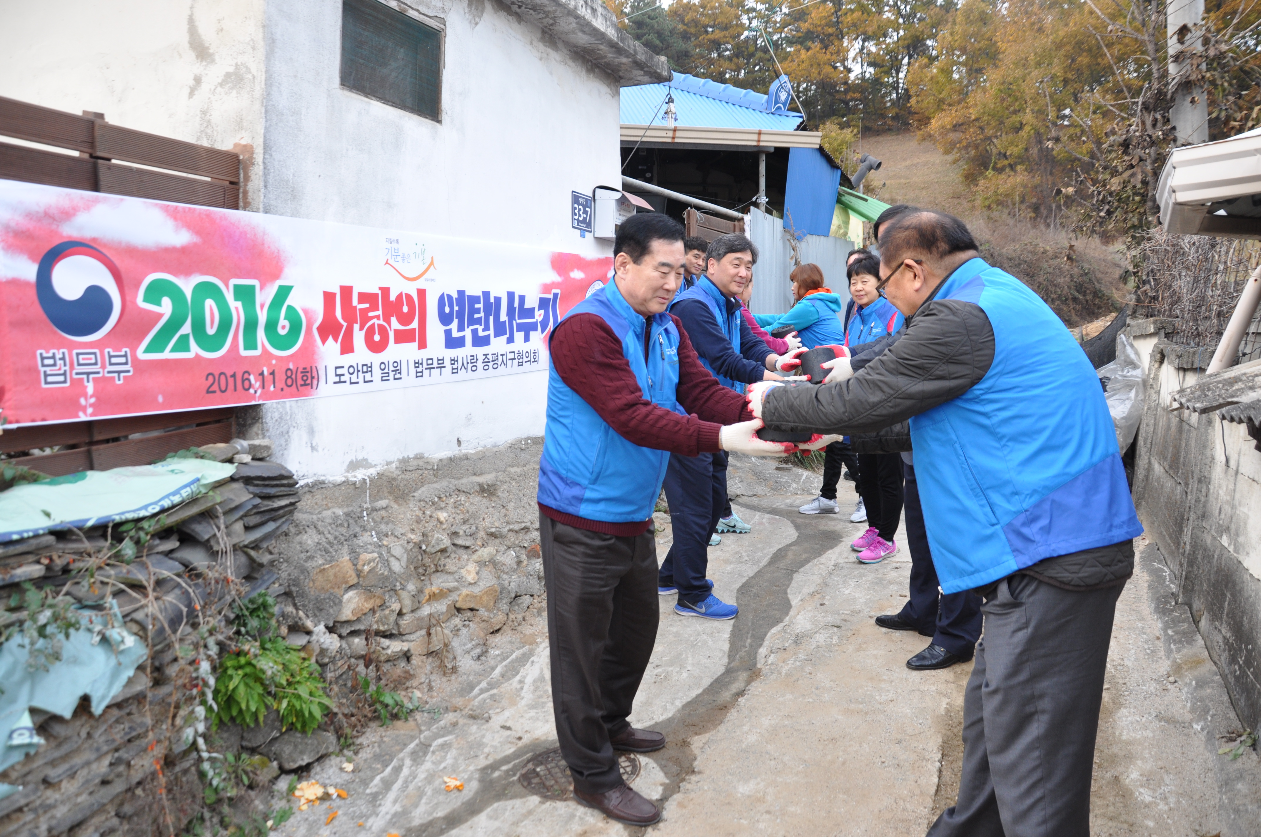 법무부 법사랑위원 증평지구협의회(회장 연광영)는 지난 8일 100만원 상당의 연탄을 증평군에 거주하는 독거노인 및 가정형편이 어려운 저소득층 6가구에 전달했다.