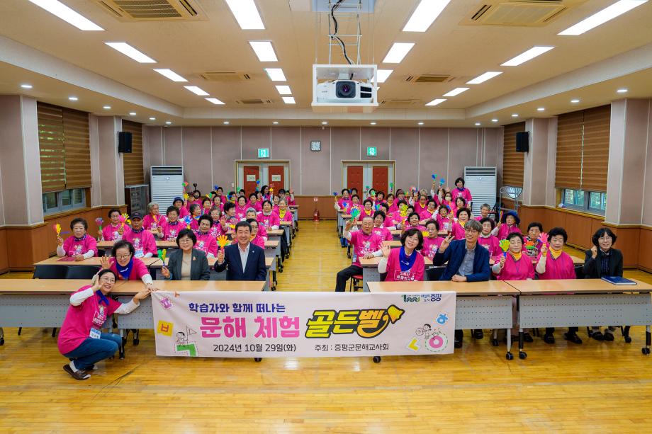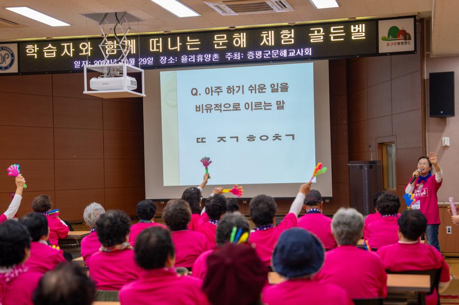 충북 증평군 김득신배움학교가 29일 좌구산 율리휴양촌 일대에서 제6회 문해골든벨을 개최했다.
