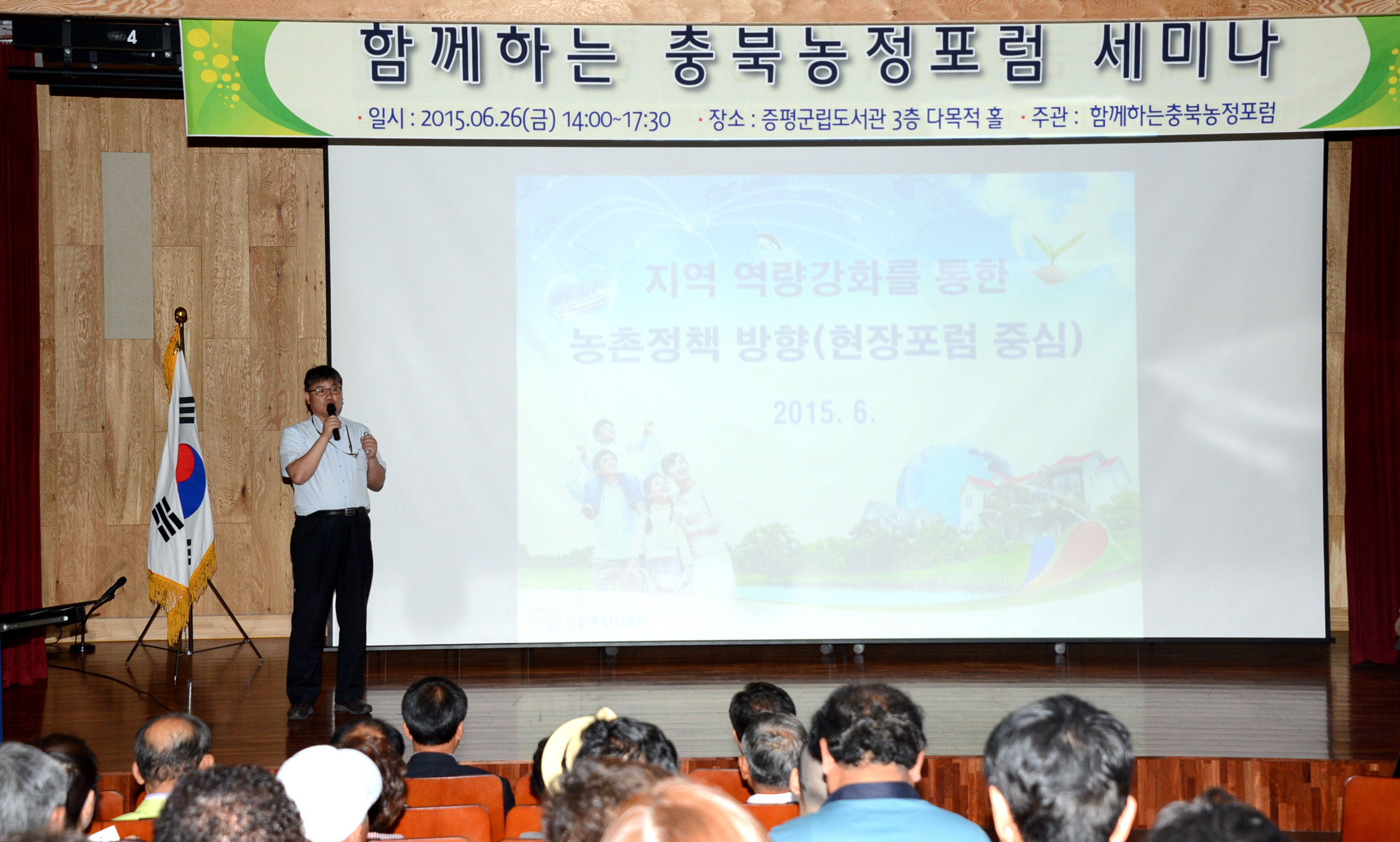 증평군은 26일 오후2시 증평군립도서관 다목적 홀에서 홍성열 증평군 비롯한 포럼회원, 중부4군 주민, 관련단체 등 100여명이 참석한 가운데 함께하는 충북농정포럼 세미나를 개최했다.(보도자료실 참조)