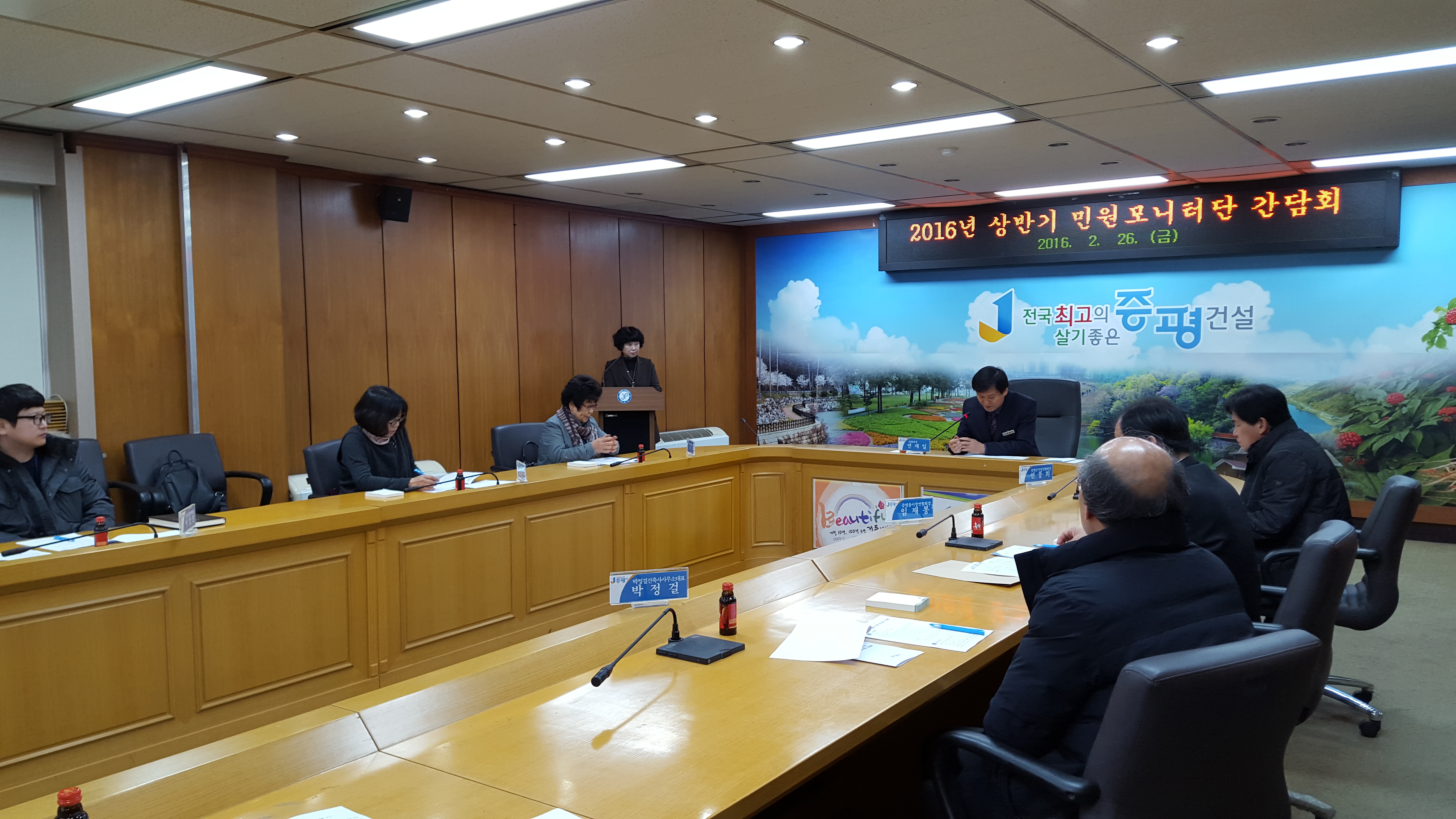 증평군은 26일 오전 11시 군청 소회의실에서 민원 모니터단 7명과 관계공무원 등 10여명이 참석한 가운데 2016년 1분기 간담회를 개최했다.