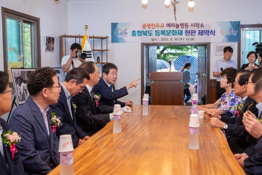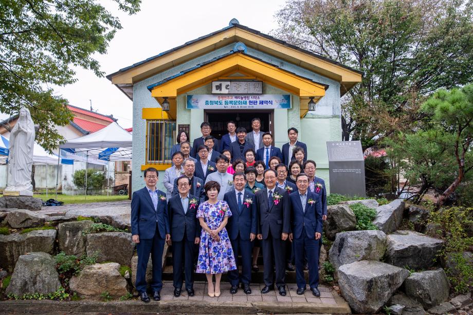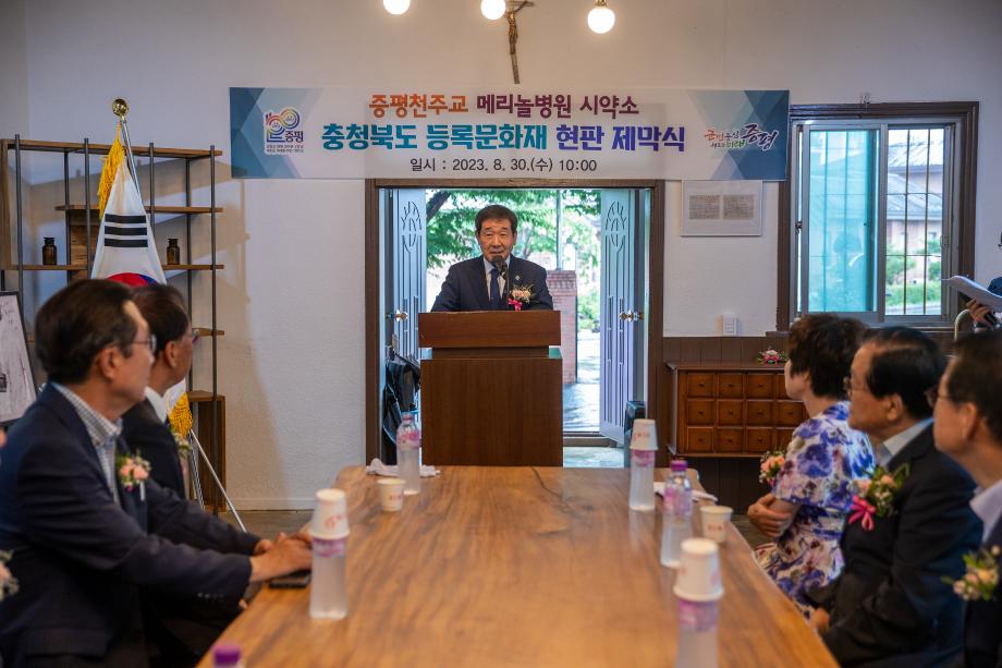 충북 증평군은 30일 ‘증평 천주교 메리놀병원 시약소’ 군 최초 등록문화재 지정 기념 현판 제막식을 개최했다.