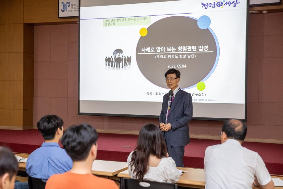 충북 증평군은 군청 대회의실에서 투명하고 청렴한 조직문화 조성을 위해 공직자 청렴교육을 실시했다고 5일 밝혔다.