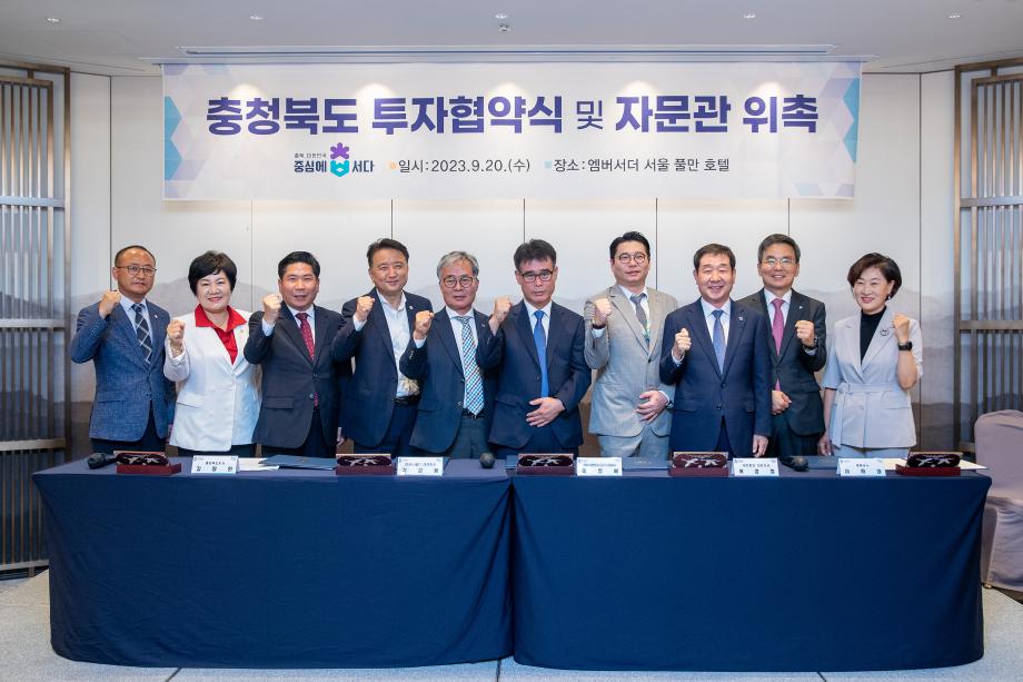 충북 증평군과 충청북도, ㈜세토피아(대표 서상철), ㈜KCM인더스트리(대표 이창배), ㈜앤에스월드(대표 김강용)는 20일‘2023 첨단 우수기업 투자유치 설명회’가 열린 앰버서더 서울 풀만 호텔에서 2,000억원대 규모의 투자협약을 체결했다.