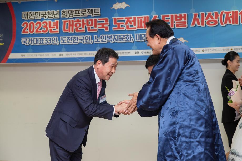 이재영 증평군수가 20일 국회의원회관에서 열린 2023 대한민국 도전페스티벌에서‘관광문화대상’을 수상했다.