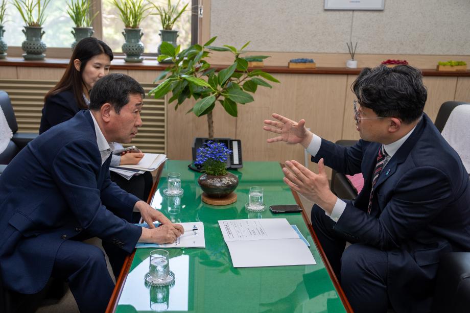 이재영 증평군수가 주민 숙원인 신동리 통로박스 해결을 위해 충북도청을 찾았다.