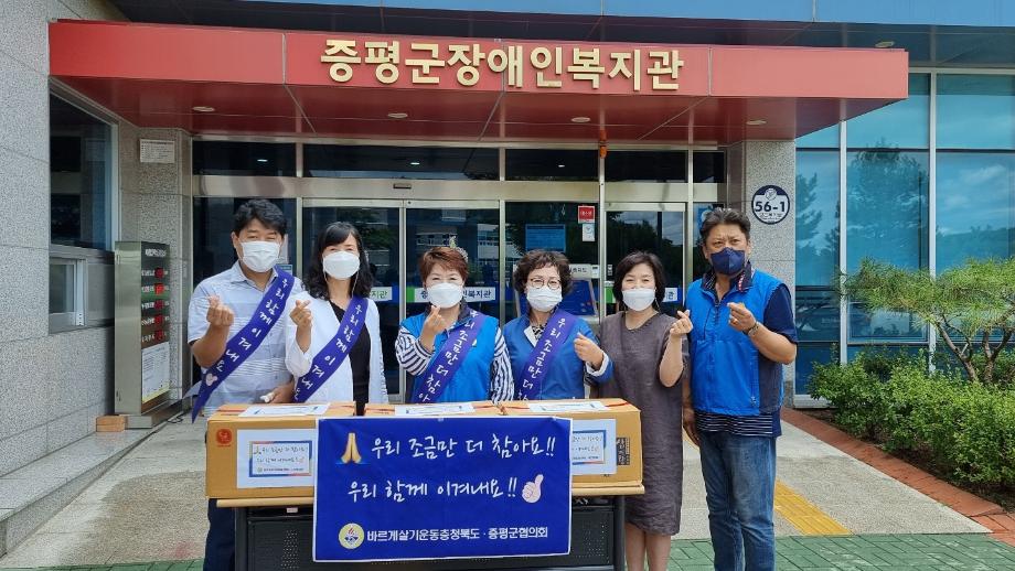 바르게살기운동 증평군협의회(회장 전명임)는 19일 관내 장애인 및 노인을 위해 사용해 달라며 삼계탕 90마리(100만원 상당)를 장애인복지관과 노인복지관에 각 45마리씩 기부했다.
