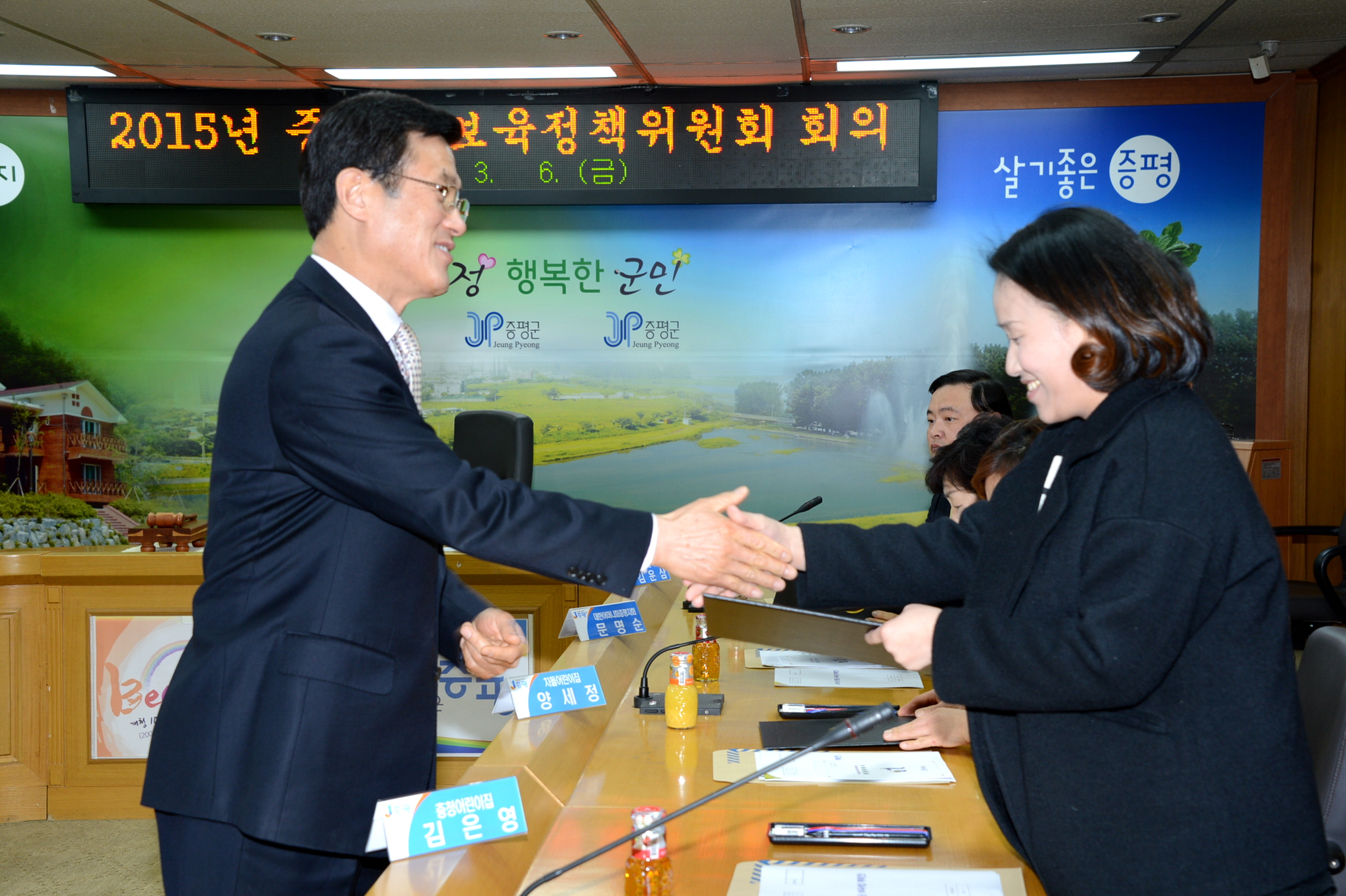 증평군은 6일 오후2시 군청 소회의실에서 군의 보육수급계획 및 어린이집 인가제한 사항을 포함한 2015년 보육사업계획 심의를 위한 보육정책위원회를 개최했다. [보도자료실 참조]