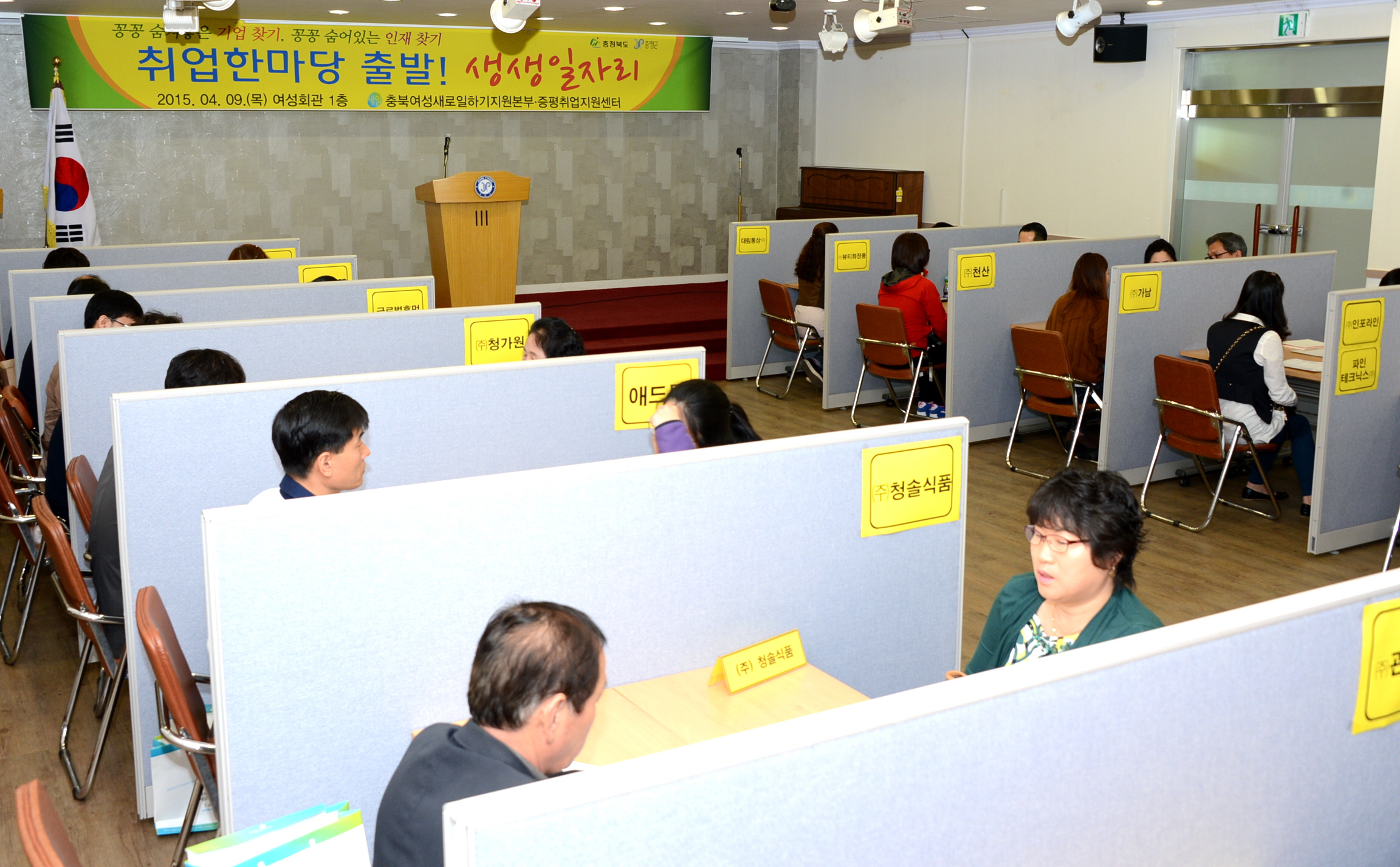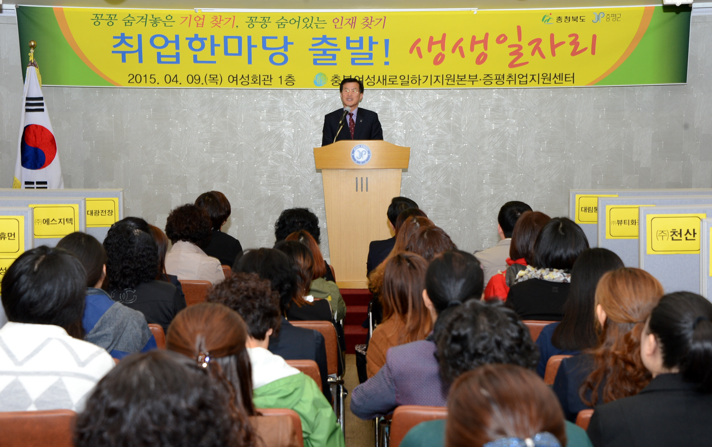 충북 여성 새로 일하기 지원본부 증평취업지원센터는 9일 오전10시, 증평여성회관에서 2015년 여성취업한마당, 출발! 생생 일자리 행사를 개최하였다. [보도자료실 참조]