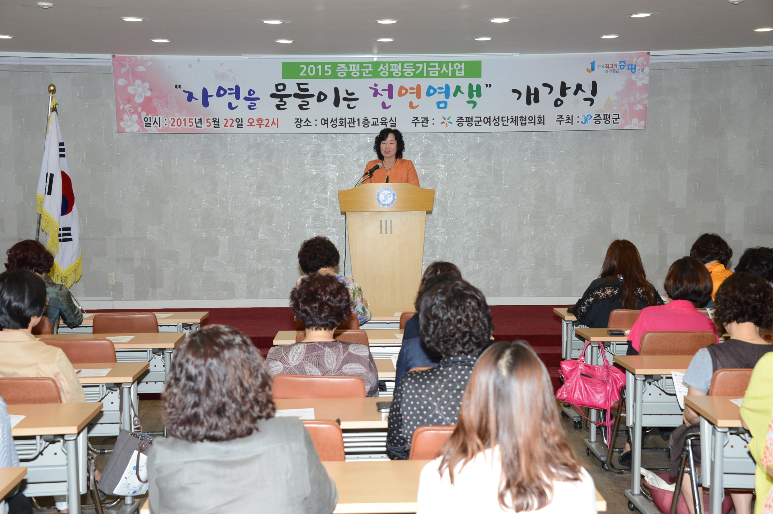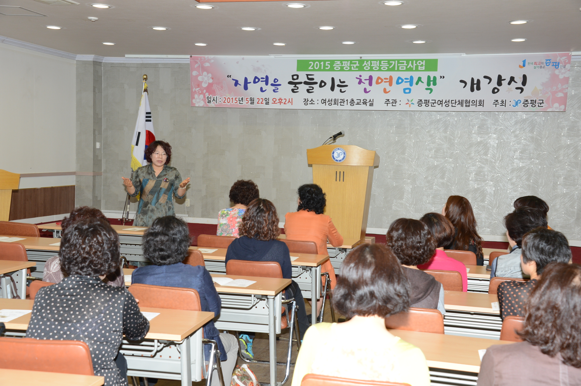 증평군은 22일 증평군여성단체협의회(회장 강춘희) 주관으로 2015년도 성평등기금사업으로 자연을 물들이는 천연염색 개강식을 여성회관 교육실에서 개최했다. [보도자료실 참조]