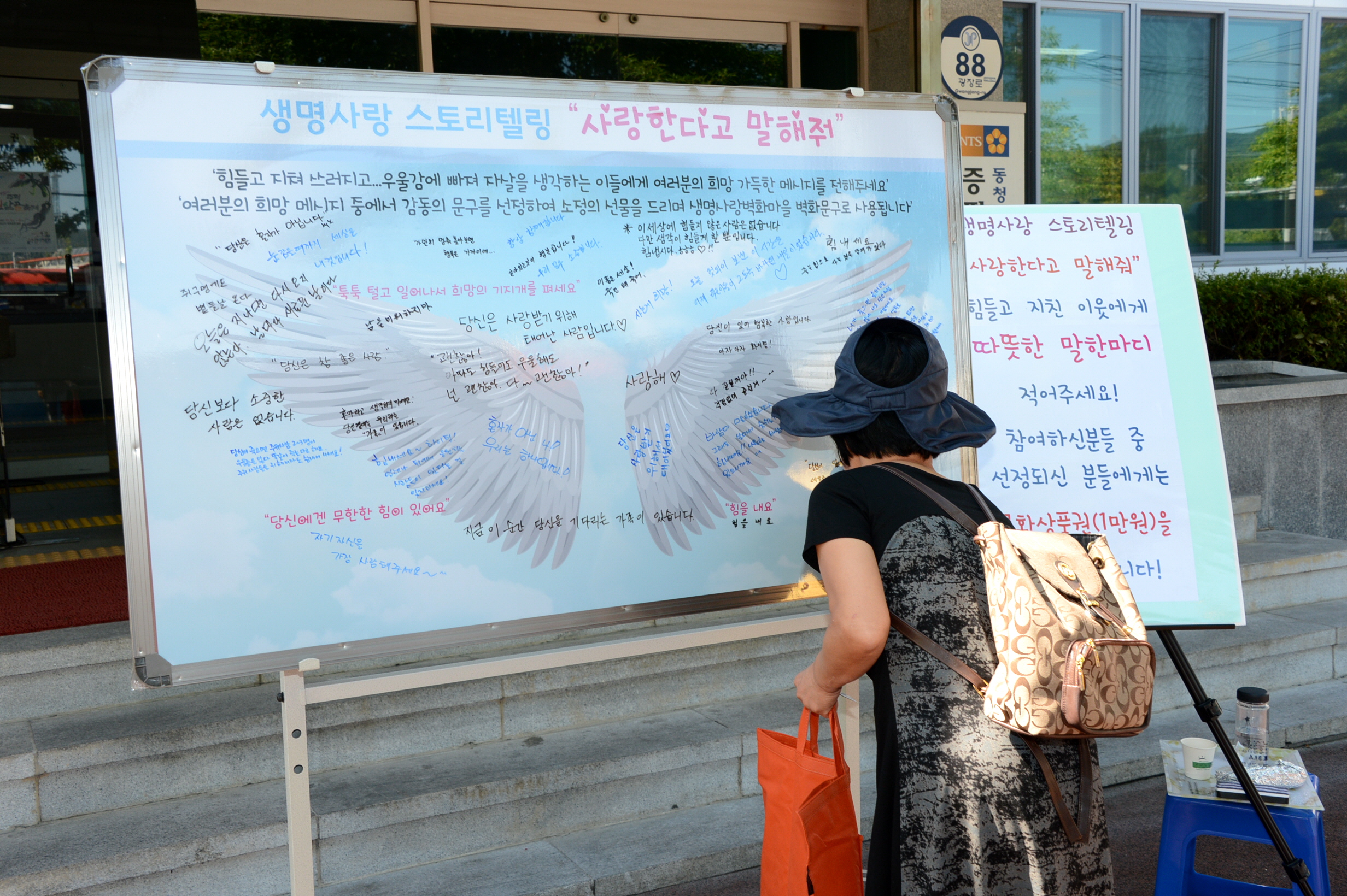 증평군과 증평군정신건강증진센터(센터장 김민경)에서는 자살예방의 날을 맞아 17일부터 18일까지 이틀간 군청 민원실앞에서 다채로운 자살예방 행사를 실시했다.[보도자료실 참조]