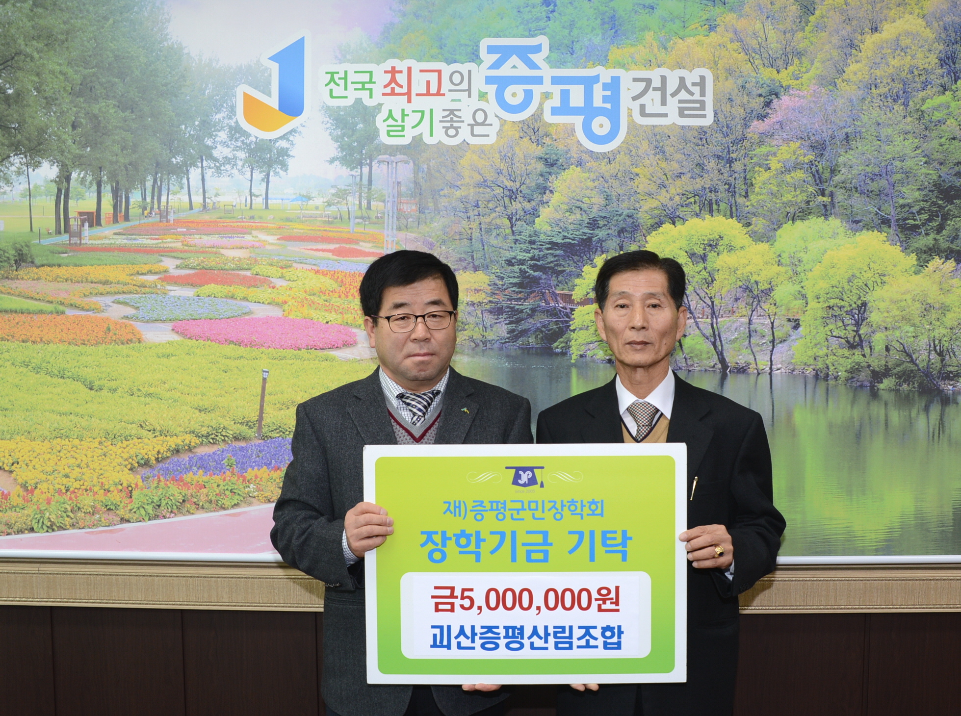 괴산증평산림조합(조합장 정연서)은 22일 증평지역의 인재육성을 위해 써달라며 (재)증평군민장학회(이사장 홍성열 증평군수)에 500만원의 장학기금을 기탁했다.(보도자료실 참조)