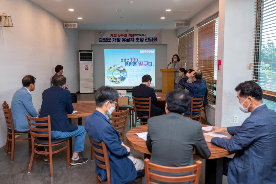 이날 간담회는 개청을 위해 노력한 정치, 행정, 문화 등 각계각층의 인사들을 초청하여 그동안의 증평군의 발전과정 및 앞으로의 증평군의 미래를 위해 다양한 의견과 자문을 얻는 소통과 공감의 자리를 가졌다.