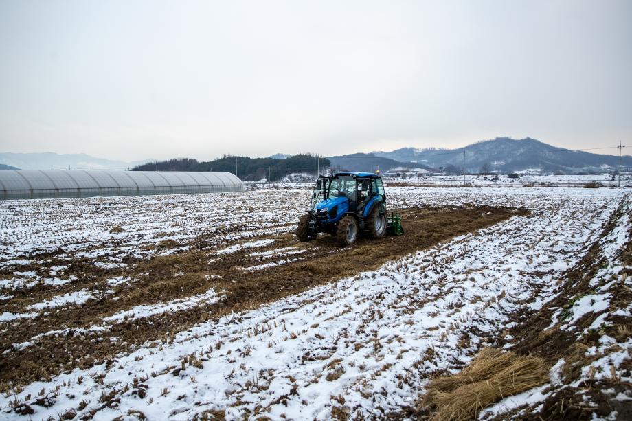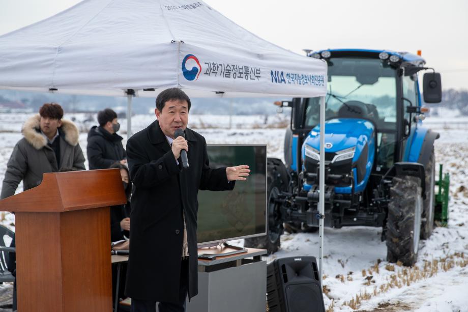 증평군이 올해 추진한 스마트빌리지 사업인 “드론과 트랙터를 활용한 자율농작업 서비스”의 현장 시연회를 15일 도안면 송정리 490 일원에서 개최했다.