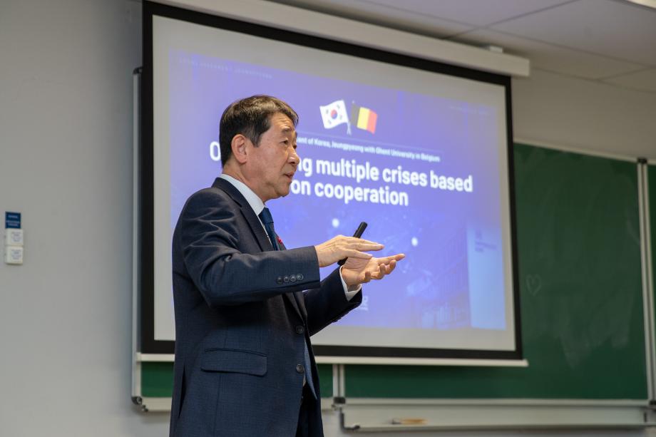 증평군 스마트팜의 성공적인 조성을 위해 벨기에를 방문 중인 이재영 군수 일행이 20일 겐트대학교(총장 릭 반 드 발레)를 방문했다.