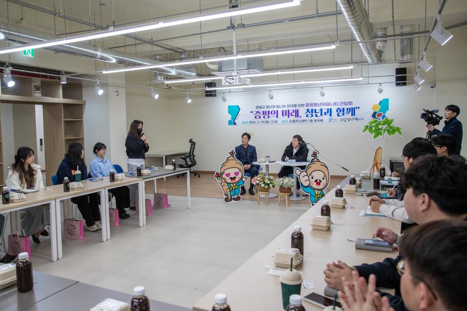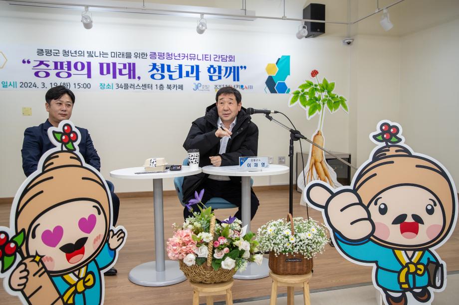 충북 증평군이 19일 34플러스센터 1층 북카페에서 ‘증평의 미래, 청년과 함께’를 주제로 증평청년커뮤니티 간담회를 개최했다.