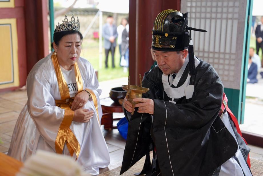 충북 (사)증평단군봉찬회(회장 연태희)는 3일 단기 4357년 어천절을 맞아 증평읍 단군전에서 개천대제를 거행했다.