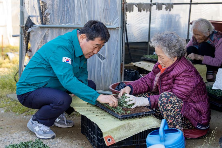 이재영 증평군수가 본격적인 영농철을 맞아 영농현장을 방문해 농업인들의 애로사항을 청취하고 농촌 현장을 점검했다.