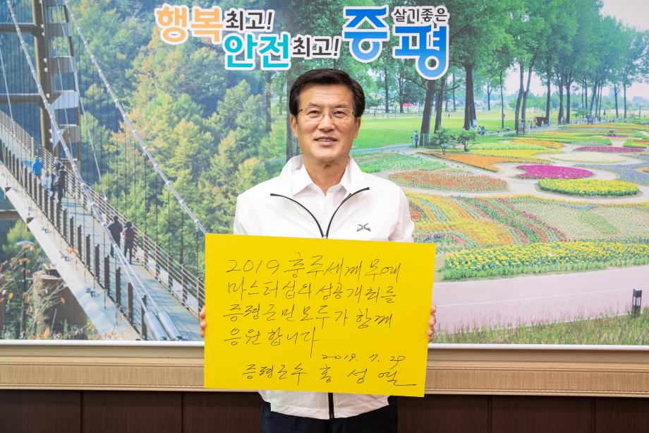 홍성열 증평군수가 세계 무예의 조화라는 주제로 충주시에서 개최되는‘2019 충주세계무예마스터십’대회성공기원 SNS 릴레이에 홍보 주자로 참여했다.