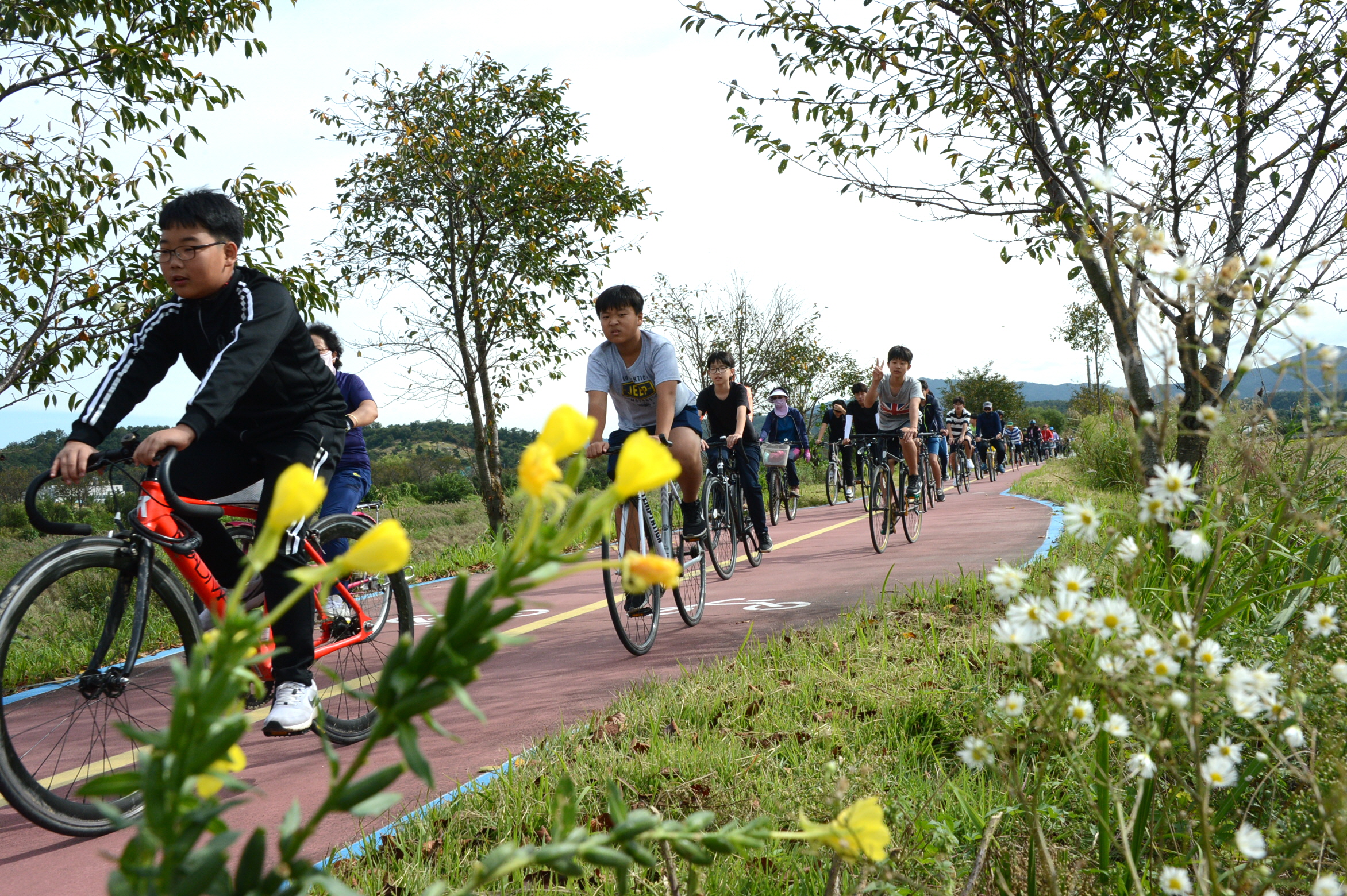 2017년 Green-BEST 증평 자전거 대행진이 16일 오전 9시 보강천 체육공원을 출발하여 미암교, 보강교, 사곡교를 거쳐 장미대교, 송산보도교를 돌아오는 약 9km 코스에서열려 참가자들이 보강천과 삼기천을 따라 이어진 아름다운 가을 정경을 만끽했다[5일 보도자료 참조]