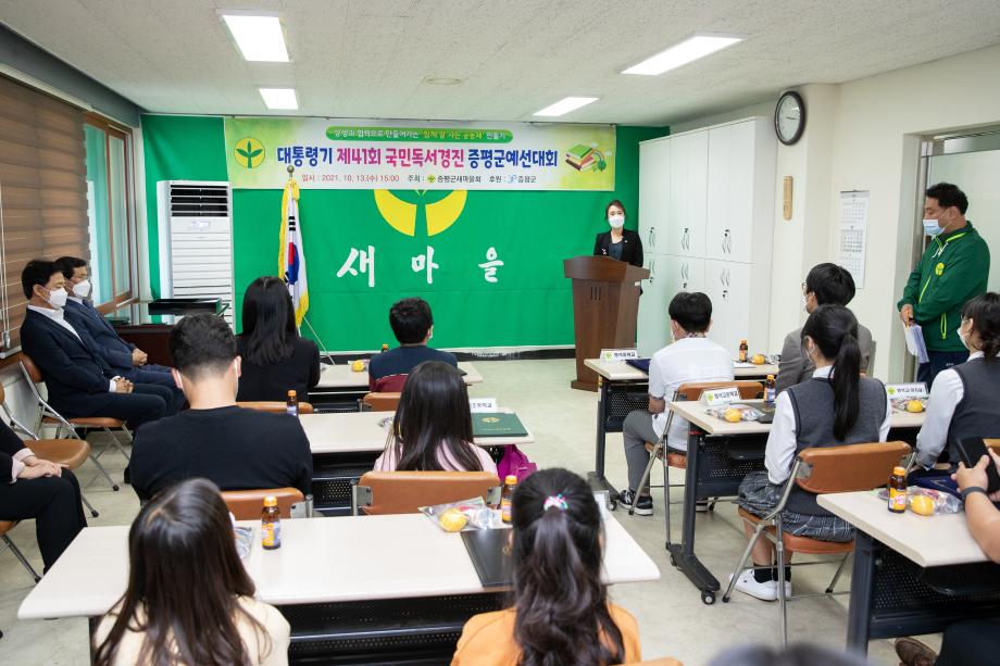 증평군새마을문고중앙회증평군지부(회장 박영미)는 13일 증평군새마을회관 1층 회의실에서 입상자 및 지도교사 20여명이 참석한 가운데 제41회 국민독서경진대회 증평군예선대회 시상식을 개최했다.