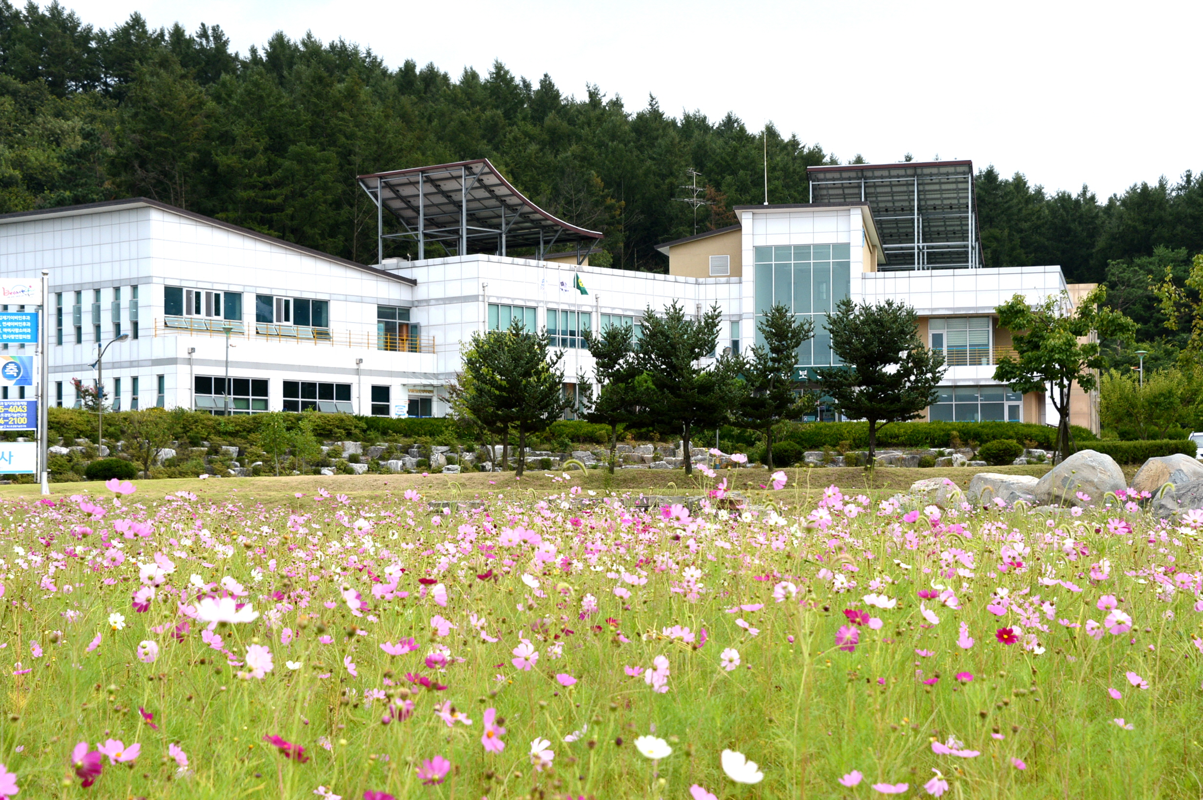 증평군은 보건복지타운 확충부지(19,153㎡)에 코스모스를 심어 주민의 쾌적한 쉼터공간을 조성했다.(보도자료실 참조)