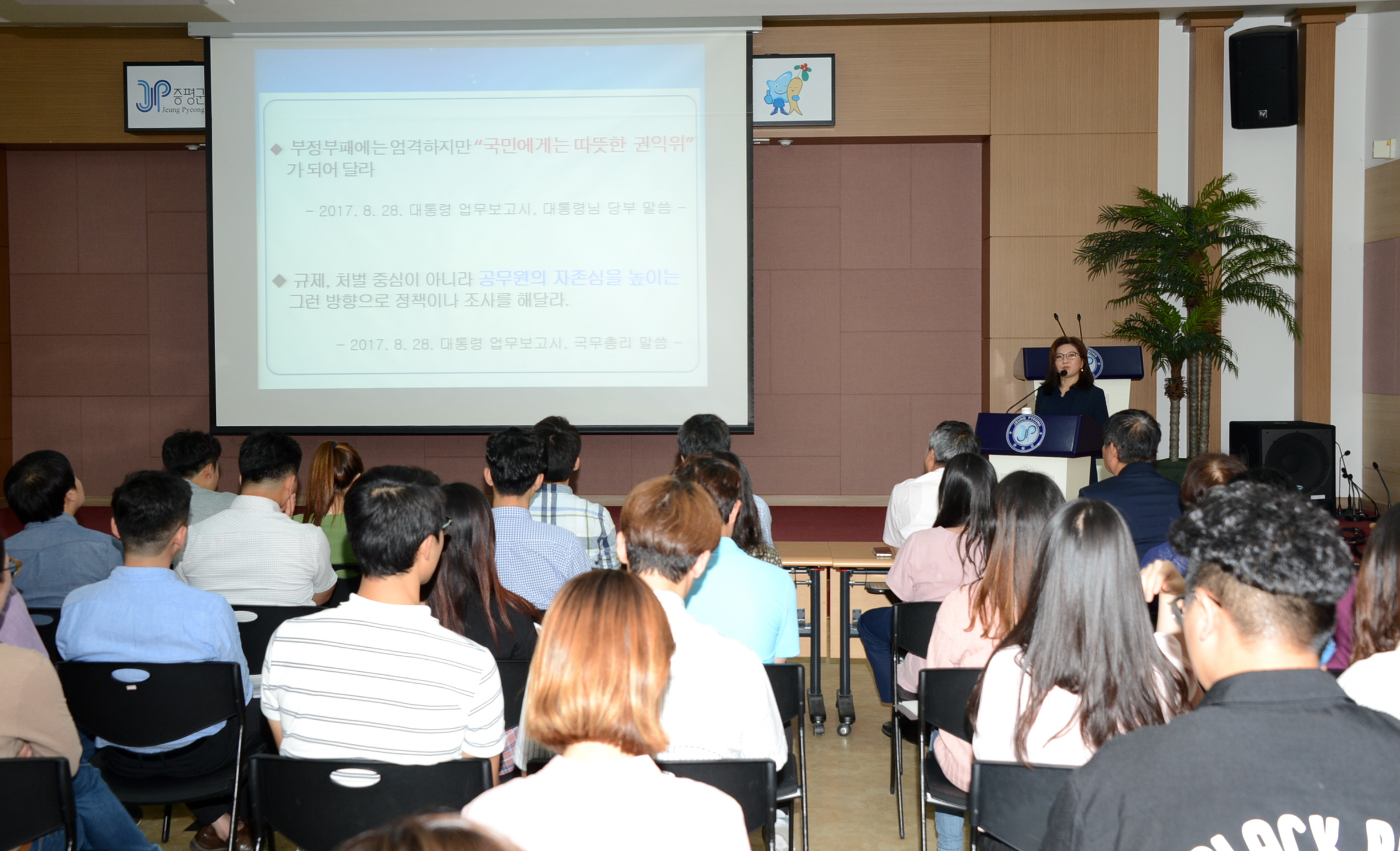 증평군은 15일 군청 대회의실에서 공무원 140여명을 대상으로 국민권익위원회의 방혜신 전문위원을 초청해‘고충민원의 이해 및 대응기법’을 주제로 교육을 실시했다.(보도자료실 참조)