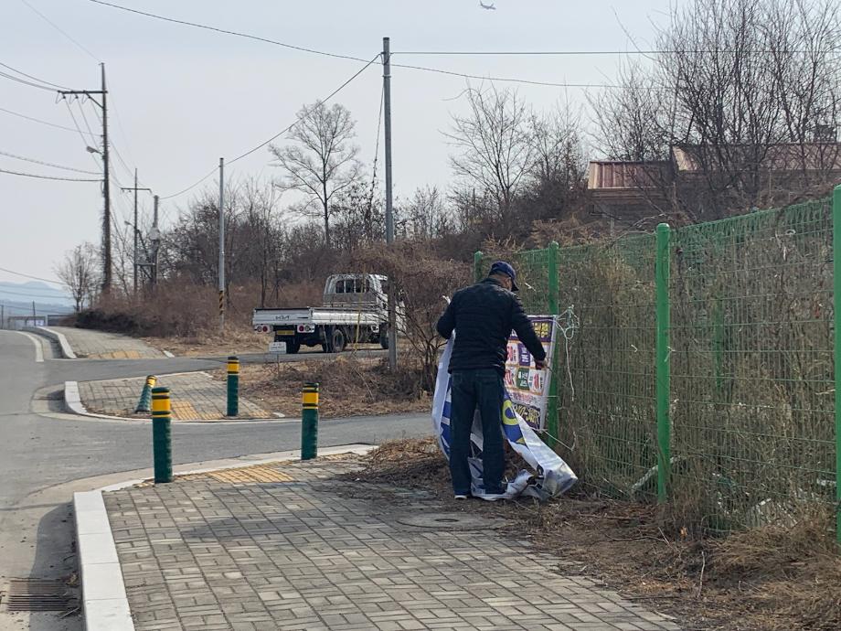 충북 증평군은 지난 10일 온 거리를 뒤덮었던 대선 관련 현수막과 아파트 홍보 불법 현수막을 증평군지부(지부장 유덕열)와 함께 합동 단속을 실시했다.