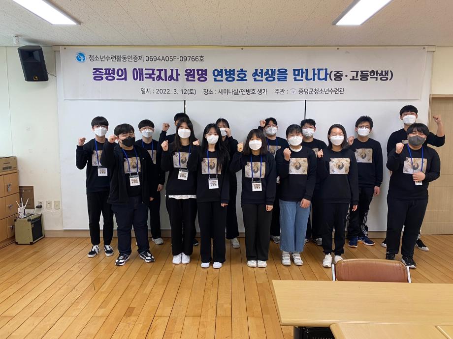 증평군 청소년 20명이 12일 지역의 독립운동가 연병호 선생의 후손을 만났다.