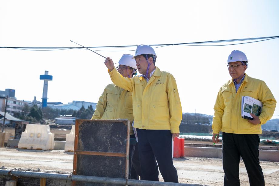이재영 증평군수가 해빙기를 대비하여 지난 22일 증평읍 사곡리 질벌뜰 재해위험개선지구 정비사업과 용강리 석현소하천 정비사업 건설공사 현장 등에 대하여 해빙기 취약시설 안전점검에 나섰다.