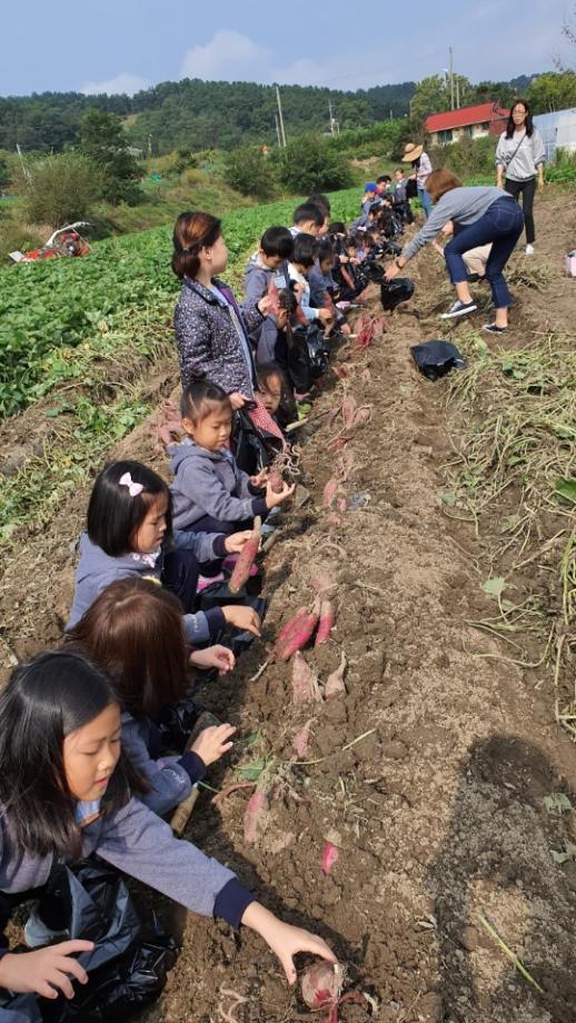 충북대 부설어린이집에서 민속박물관으로 체험 나들이를 왔네요. 도자기로 예쁜 브로치도 만들고 신나는 고구마 캐기 체험도 했네요.