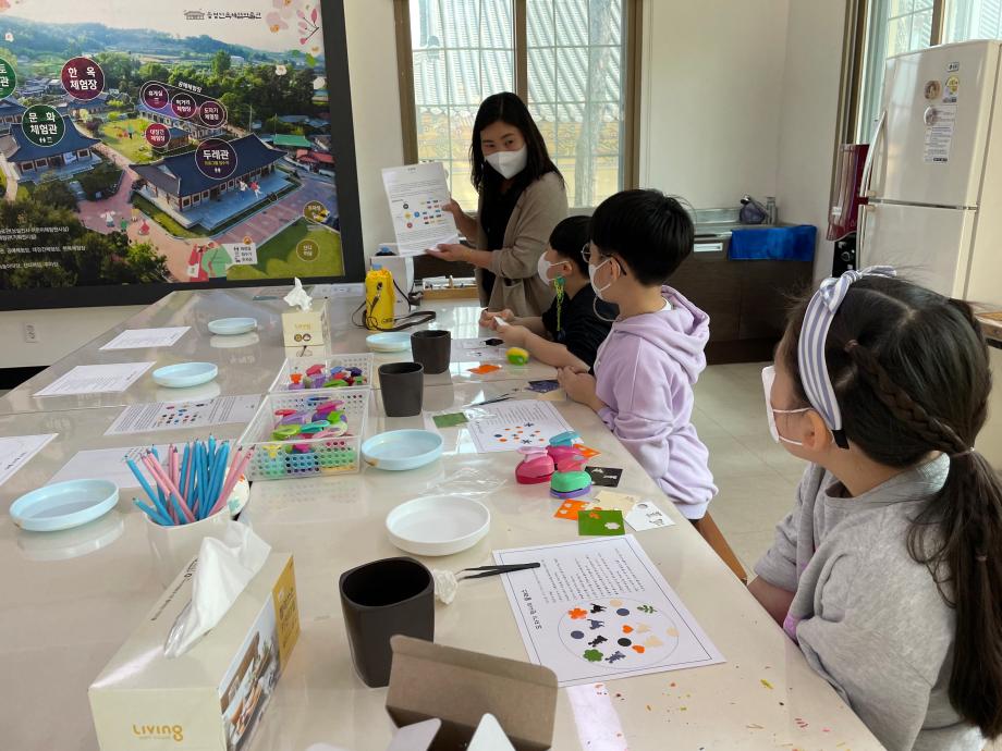 - 내용 : 우리나라 전통 오방간색을 알아보고, 전사지로 나만의 그릇 꾸며보기(선물포장박스 증정)