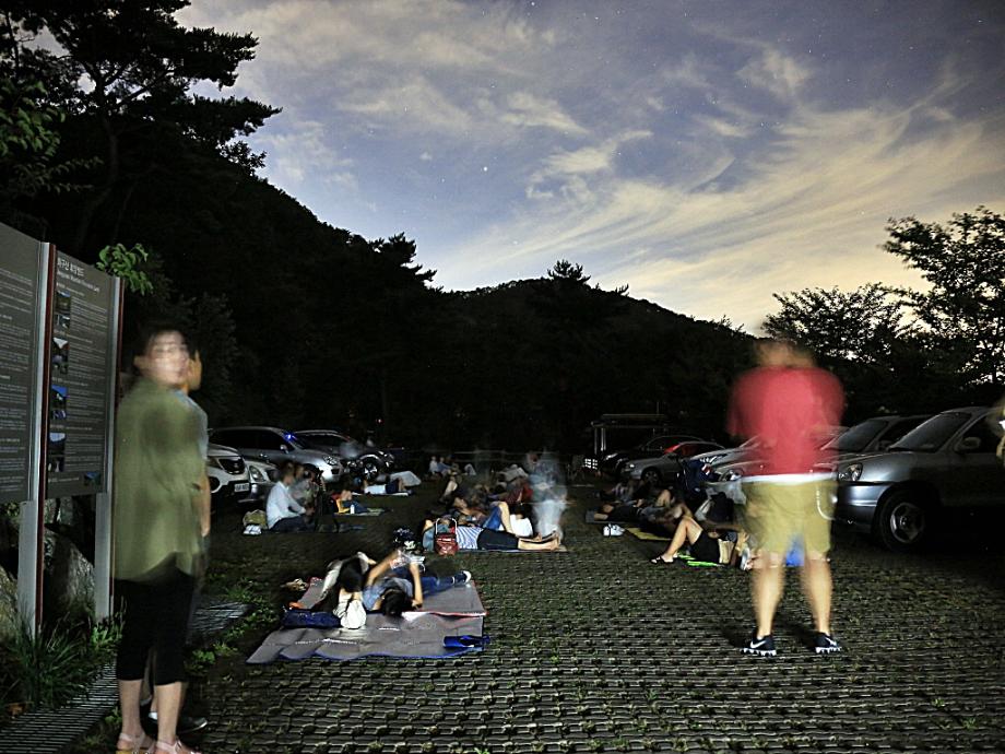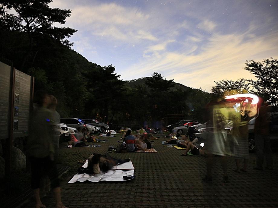페르세우스 유성우 떨어지는 날 관람객으로 가득찬 천문대