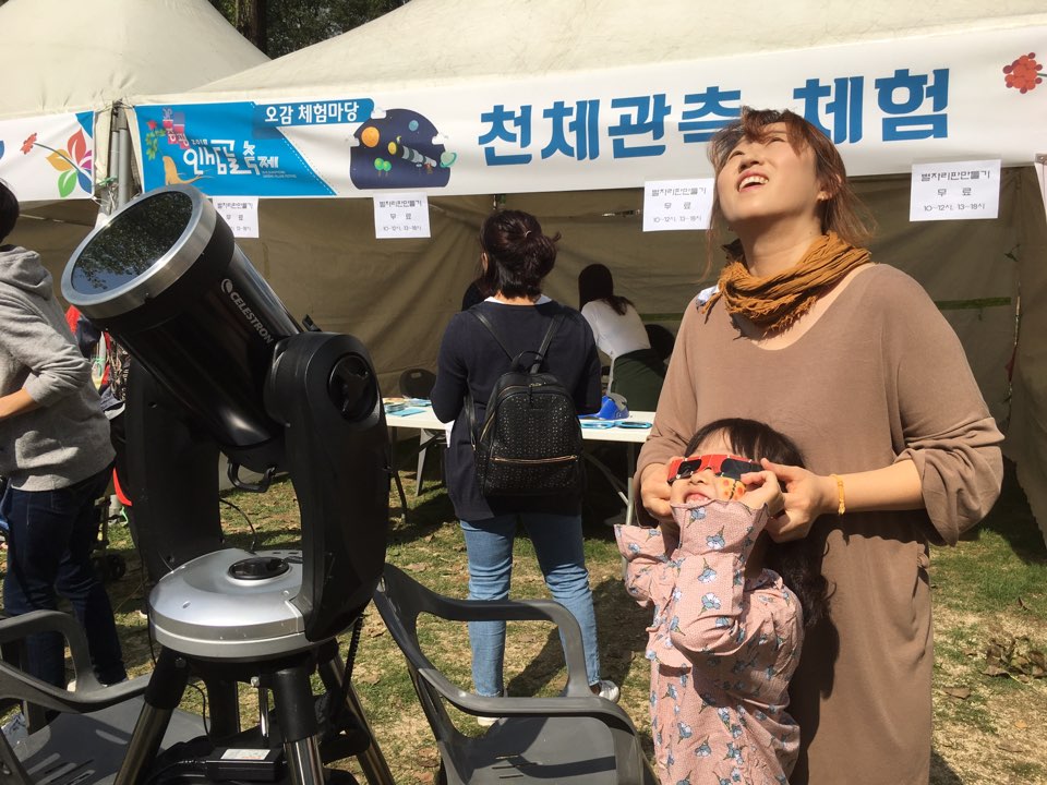 태풍 콩레이가 물러가면서 화창한 날씨 속에 저희 좌구산천문대 천체관측체험부스에 많은 분들이 찾아오셨습니다.