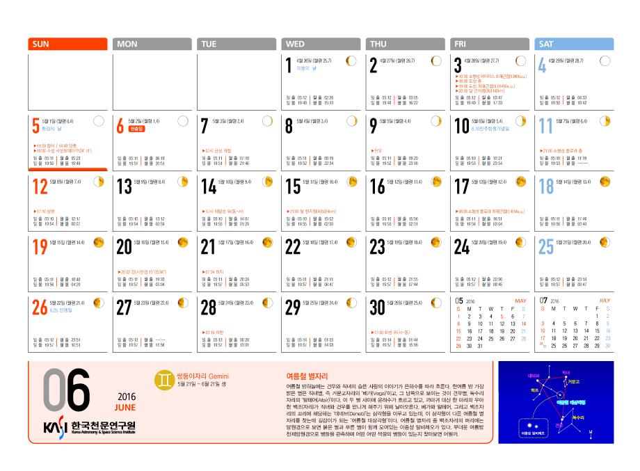 2016년 6월 천체현상 및 별자리입니다.