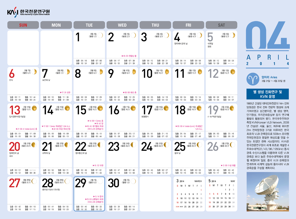 2014년 4월 별자리와 천문현상 자료입니다(한국천문연구원 자료제공).