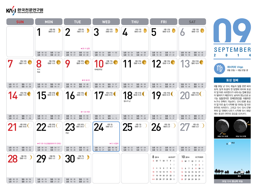 2014년 9월 별자리와 천문현상 자료입니다(한국천문연구원 자료제공).