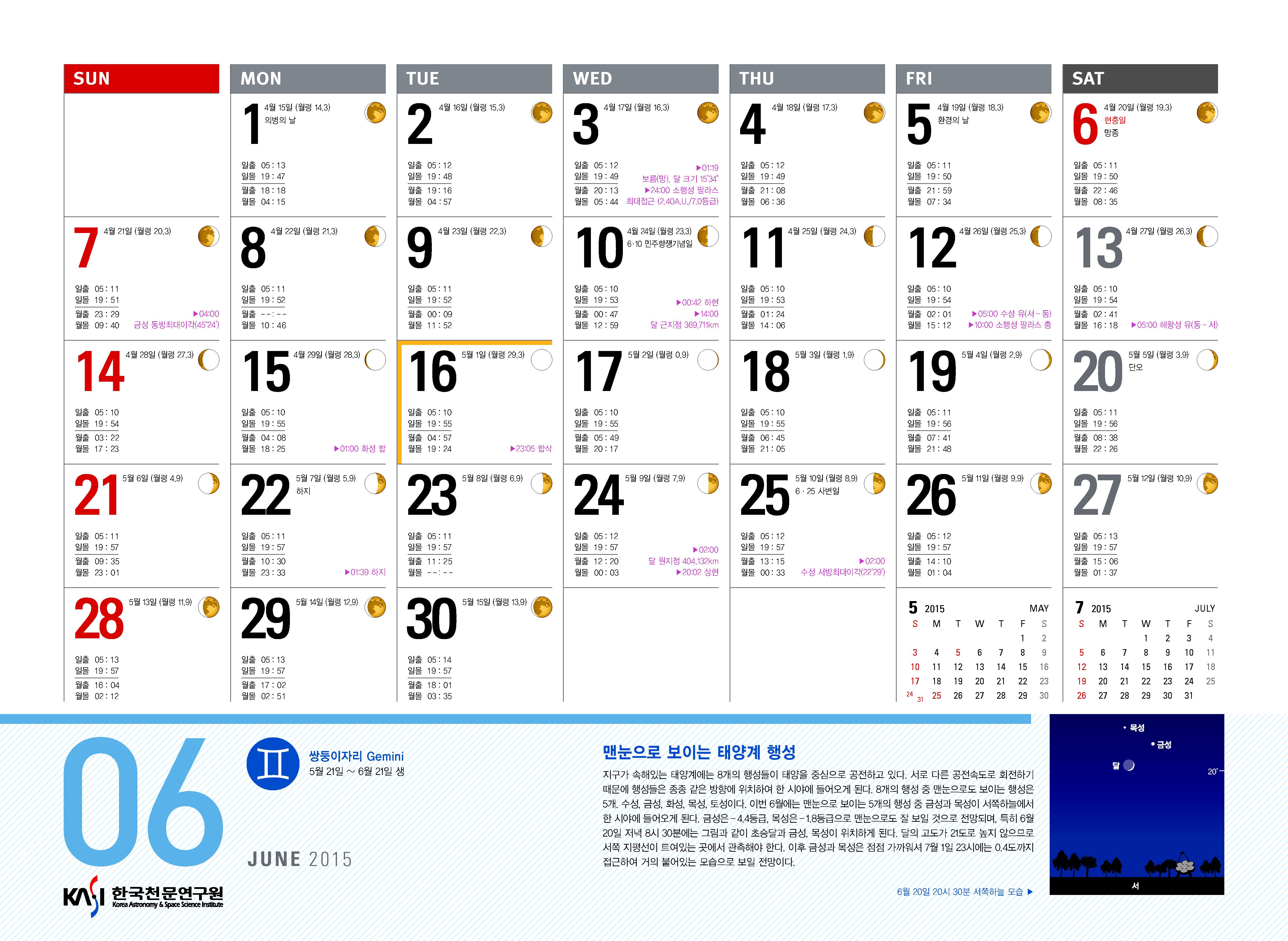 2015년 6월 천체현상 및 별자리입니다.